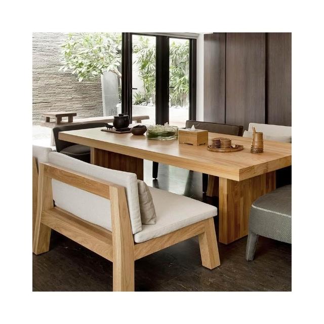 北歐現代鐵藝實木餐桌 家用小戶型長方形多人吃飯桌子原木餐桌椅