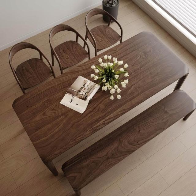 送貨上門北美黑胡桃木餐桌長方形輕奢簡約現代家用全實木飯桌原木書桌傢俱
