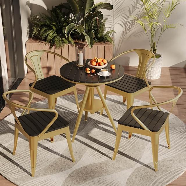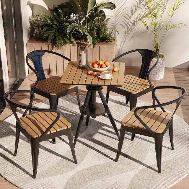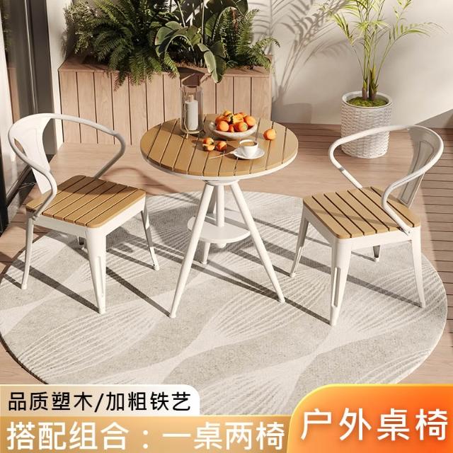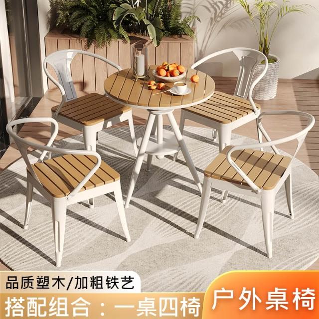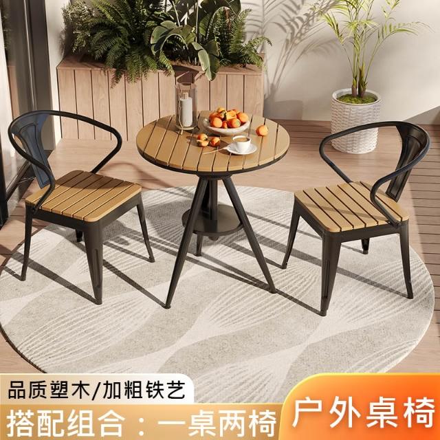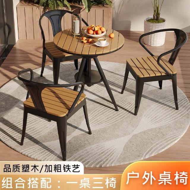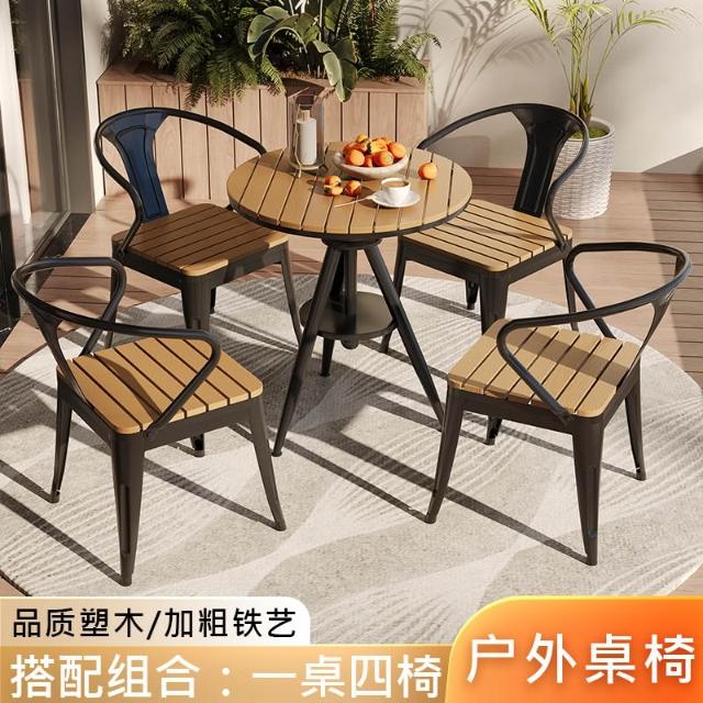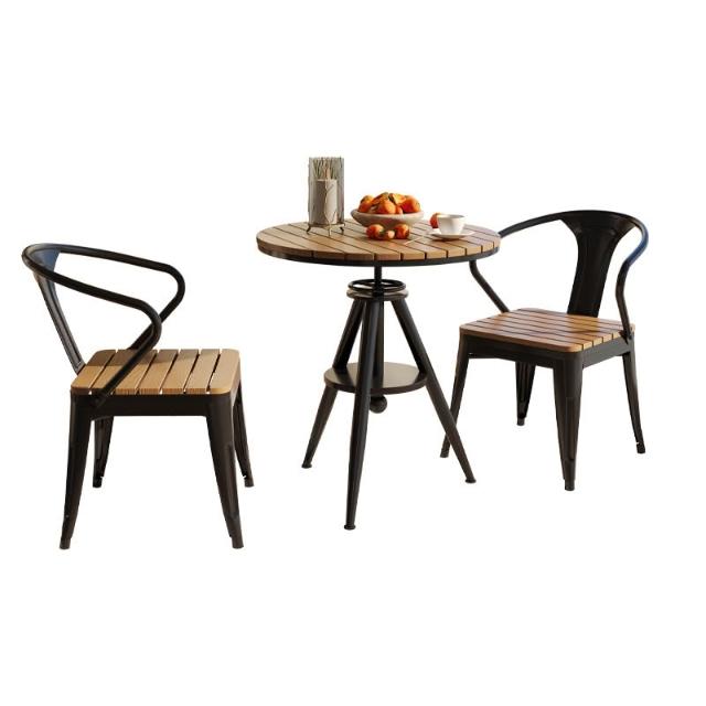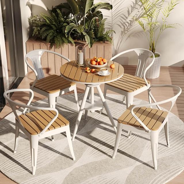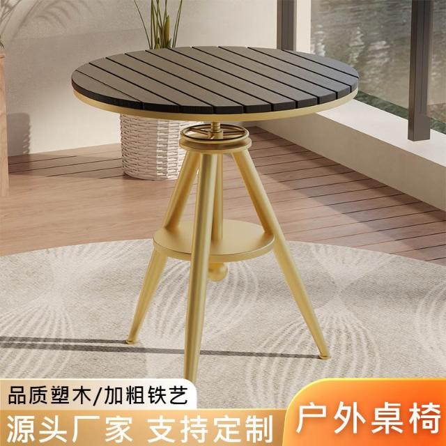 戶外休閒桌椅露天庭院防腐木室外餐桌椅組合家用可升降陽臺方圓桌
