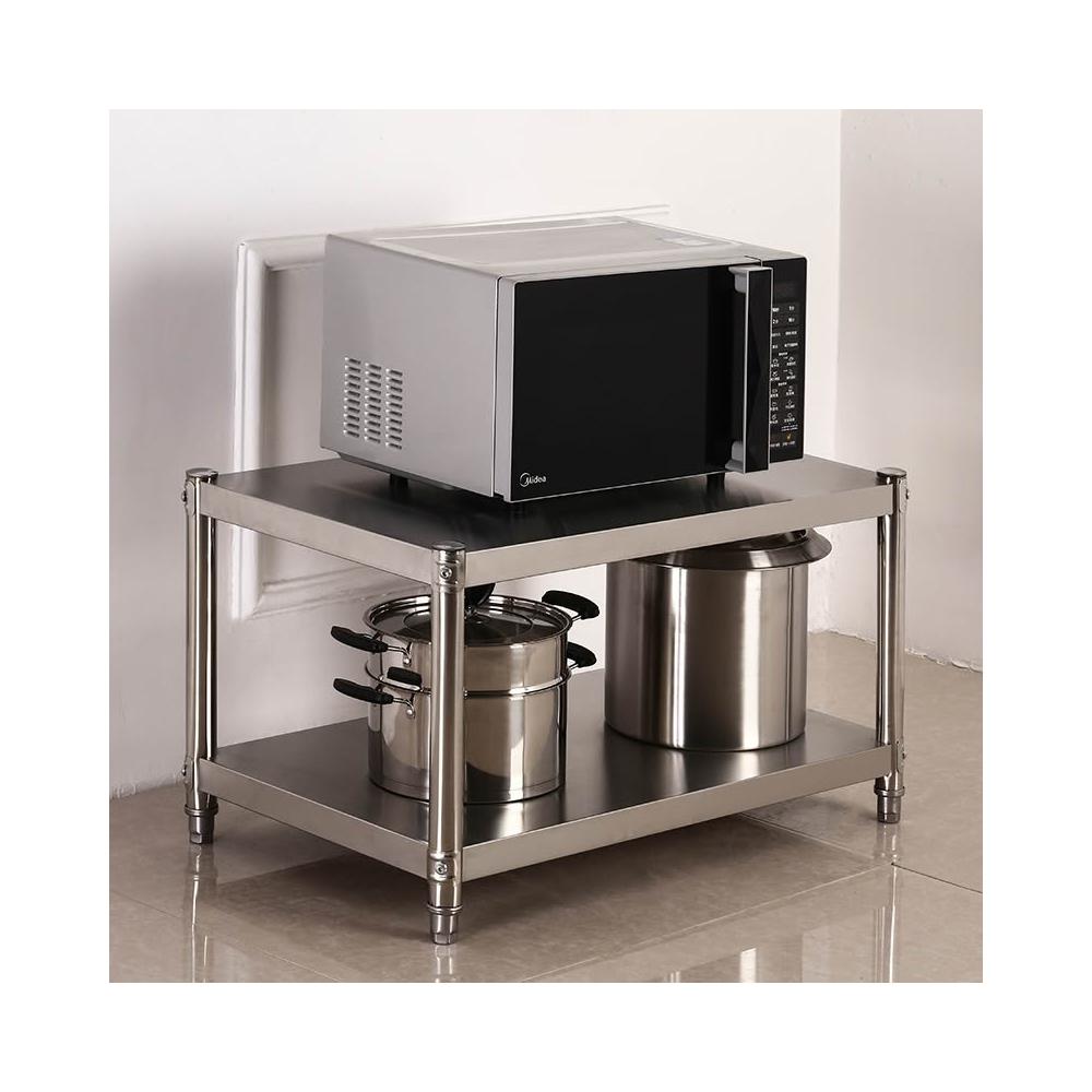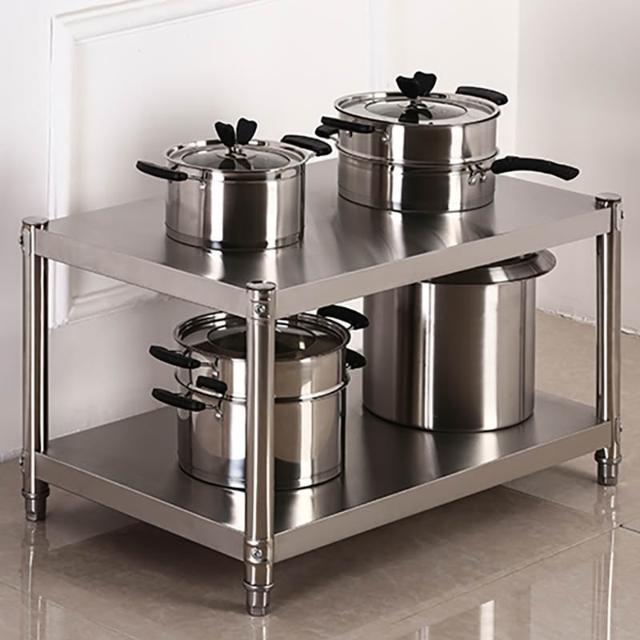 家用加厚多功能廚房儲物架不銹鋼置物架雙層落地微波爐物品收贏朔