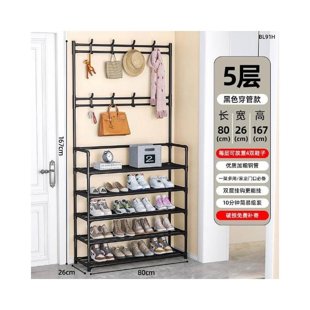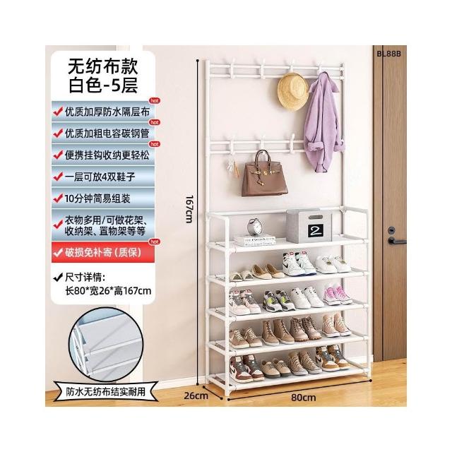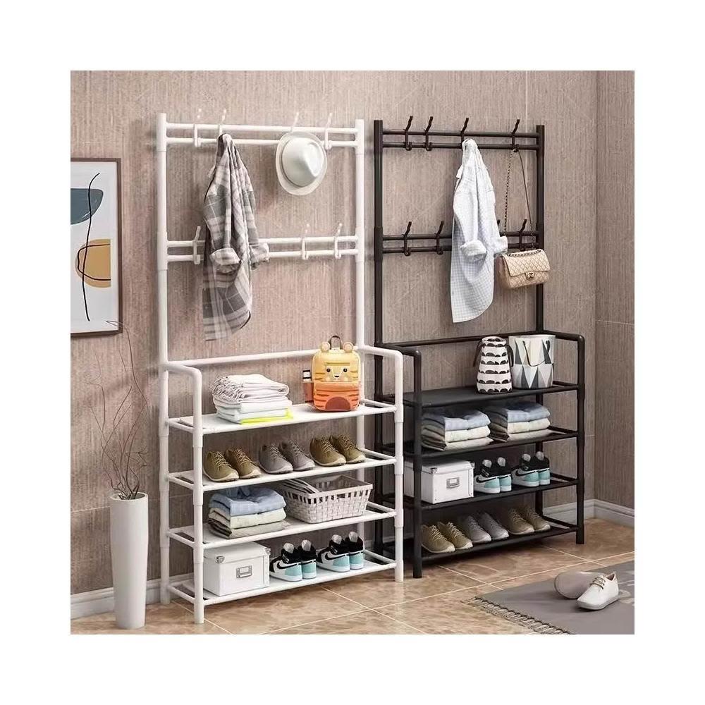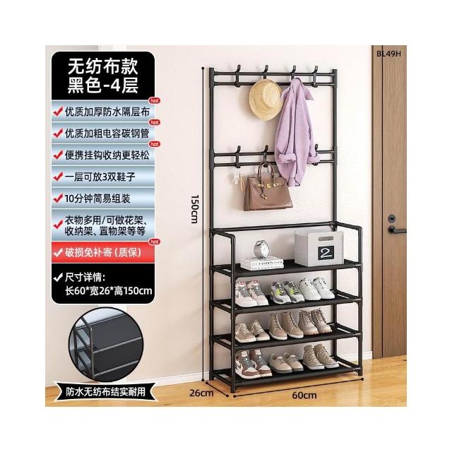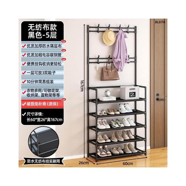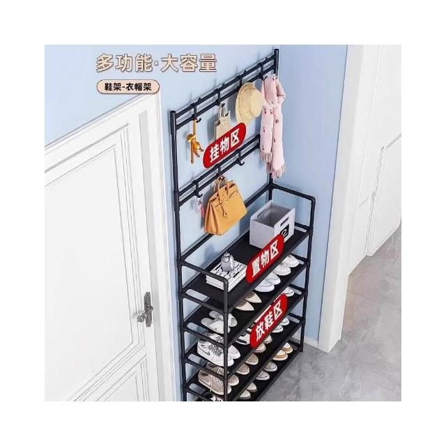 入戶鞋架子家用門口簡易多層新款出租房用鞋櫃一體掛衣置物架鞋架