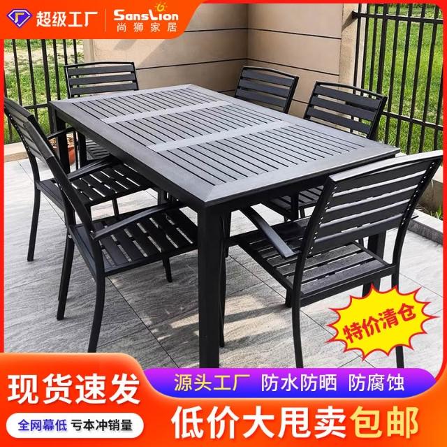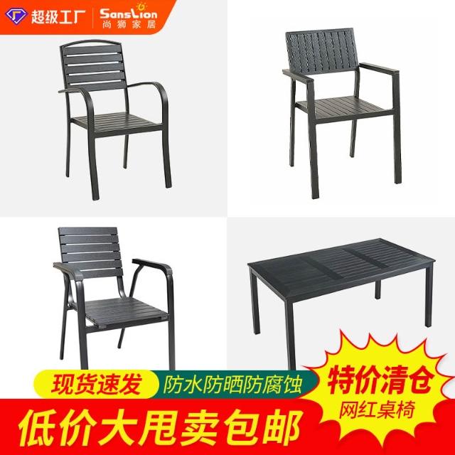 戶外桌椅庭院餐廳商業街工程防曬金屬桌椅室外塑木桌椅特價清倉