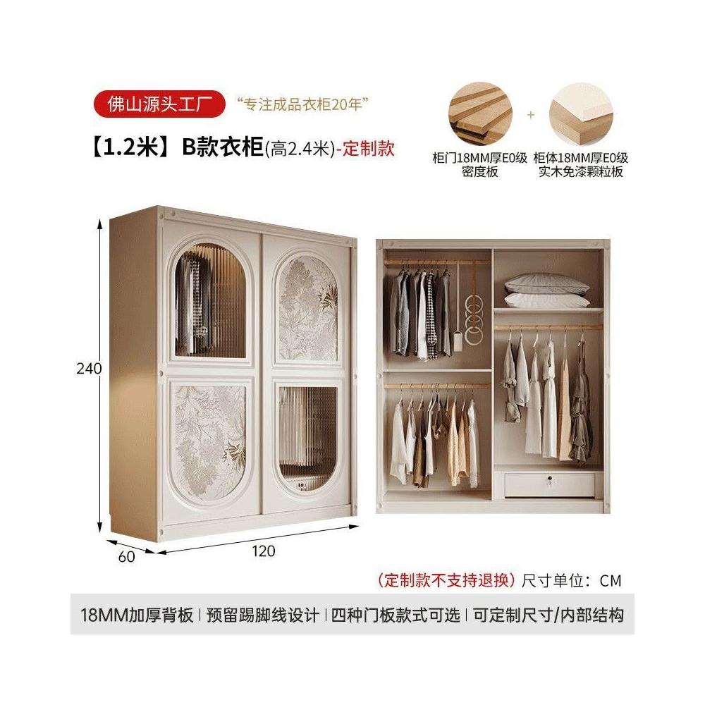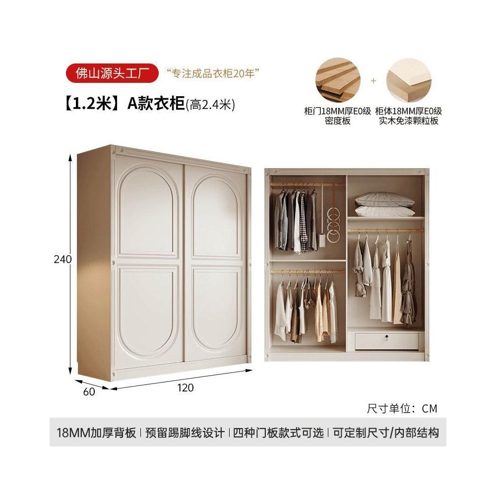 可上門組裝法式奶油風推拉門衣櫃一門到頂滑門移門櫃子家用臥室歐式白色衣櫥