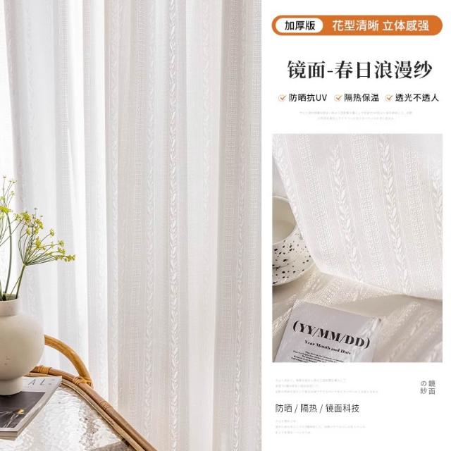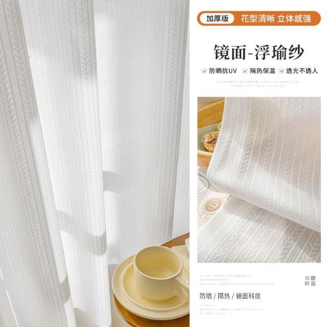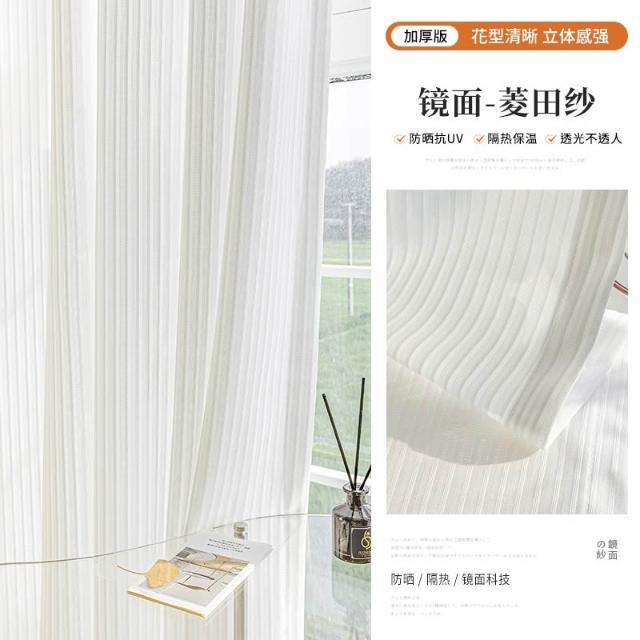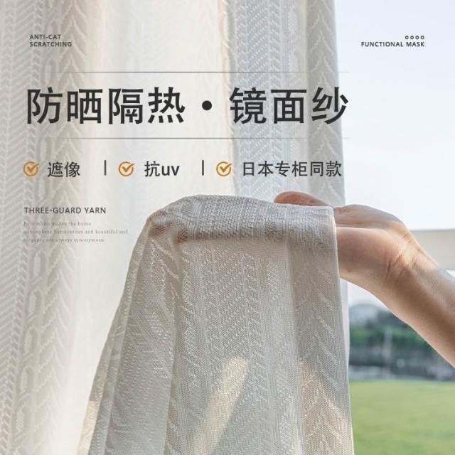 鏡面紗窗簾紗簾透光不透人客廳陽臺日式隔熱遮陽飄窗白紗防曬窗紗