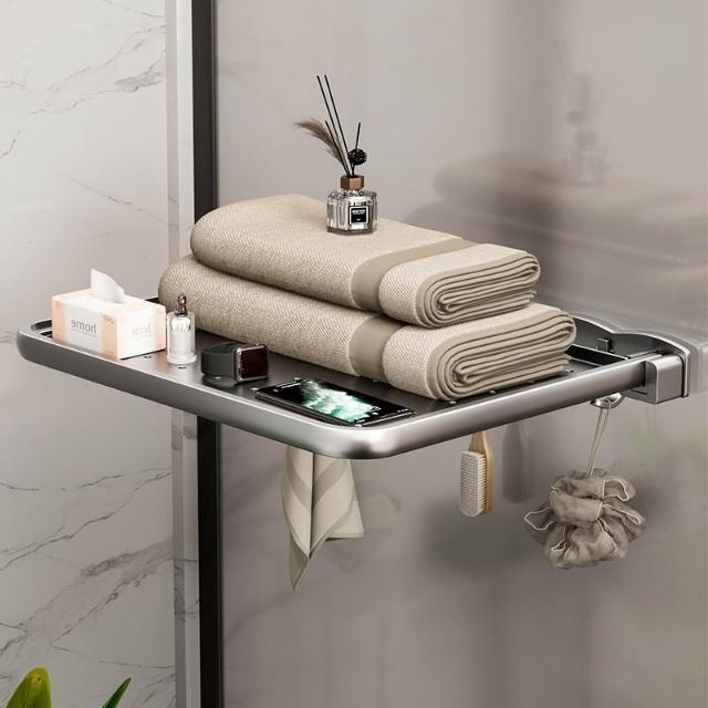 衛生間放衣服神器浴室免打孔毛巾衣服置物架洗澡間壁掛 折叠架 收納架