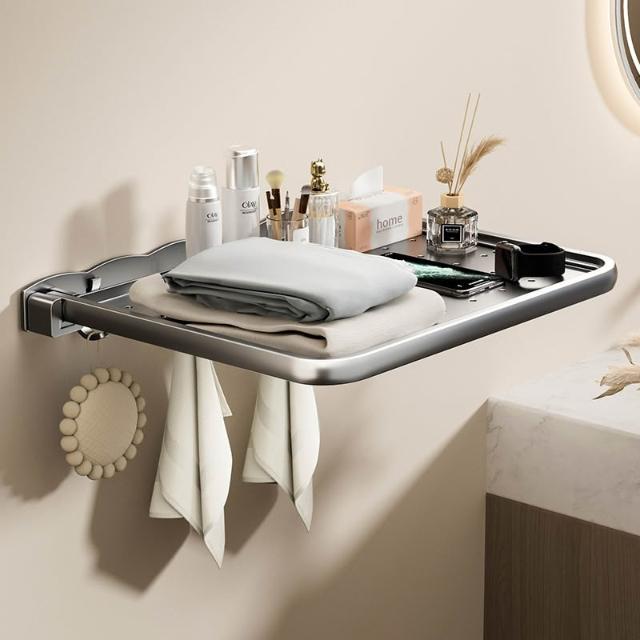 衛生間放衣服神器浴室免打孔毛巾衣服置物架洗澡間壁掛 折叠架 收納架
