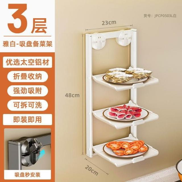 備菜架 廚房置物架吸盤式多層備菜收納架免打孔太空鋁加厚折疊調料架