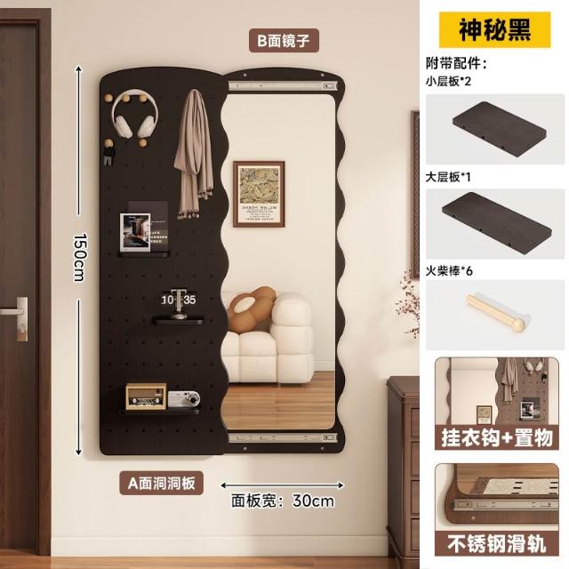 洞洞板穿衣鏡隱形可關閉推拉全身鏡壁掛式家用玄關掛牆大試衣鏡子