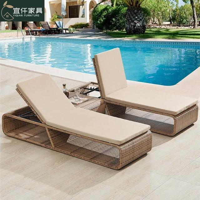 戶外躺床游泳池躺椅海邊休閒沙灘椅露臺休閒椅別墅陽臺室外藤躺椅
