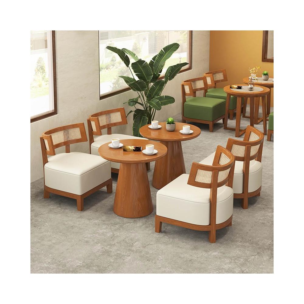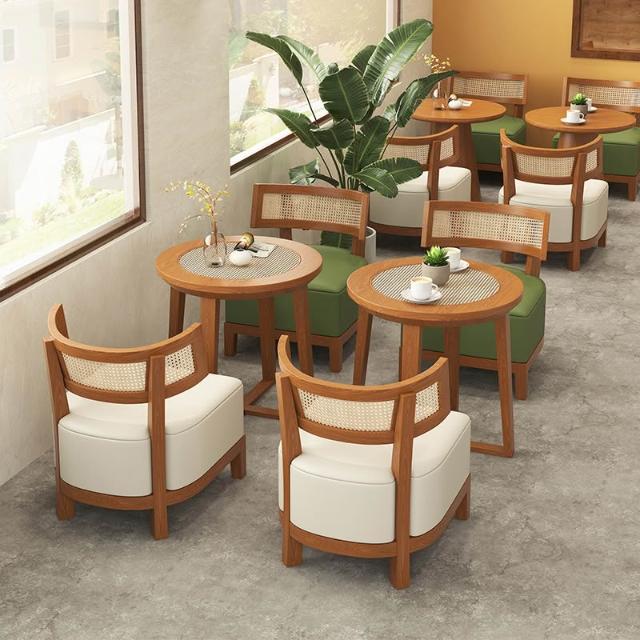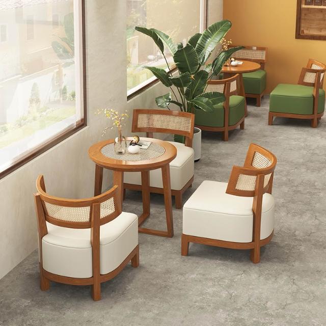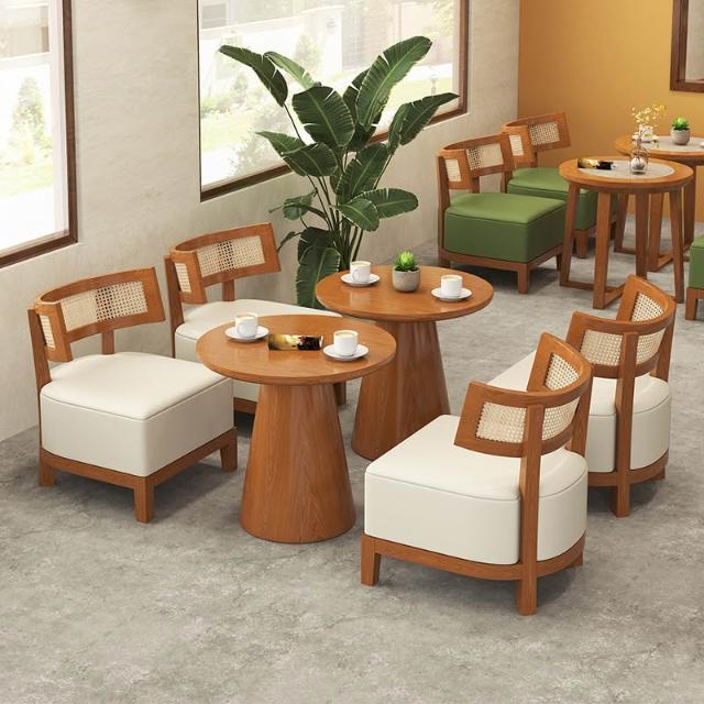 奶茶店甜品餐饮店设计师藤编实木侘寂风休闲洽谈咖啡厅桌椅组合