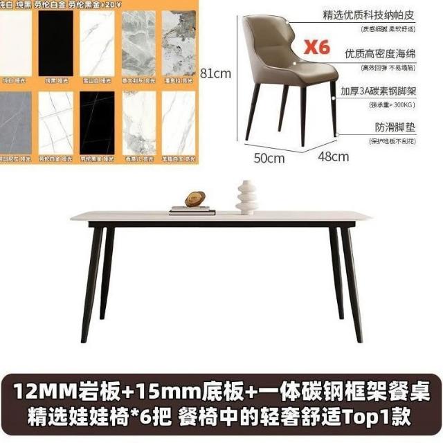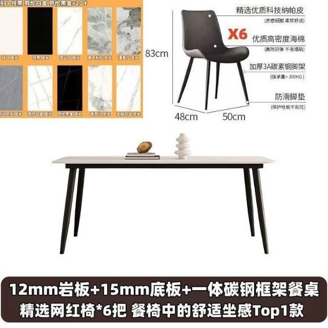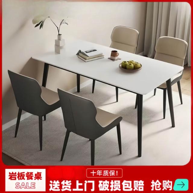 岩板意式餐桌家用小戶型桌子飯桌現代簡約輕奢長方形餐桌椅組合
