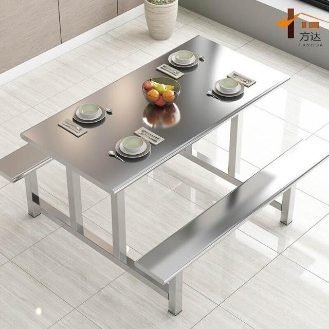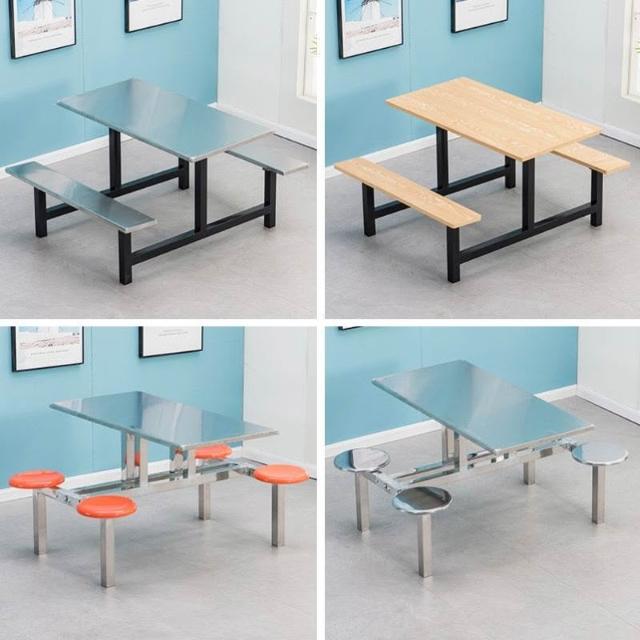 學校不銹鋼餐桌食堂餐桌椅員工工人工廠連體掛凳4人6人8人餐桌椅