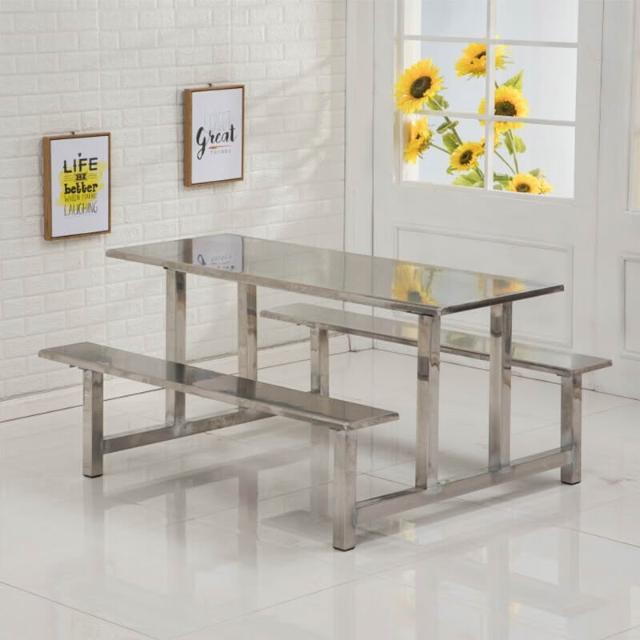 學校不銹鋼餐桌食堂餐桌椅員工工人工廠連體掛凳4人6人8人餐桌椅