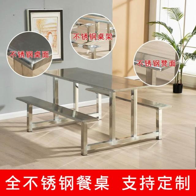 學校不銹鋼餐桌食堂餐桌椅員工工人工廠連體掛凳4人6人8人餐桌椅