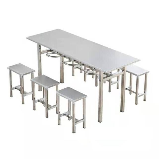 食堂不銹鋼餐桌學校工廠員工醫院4人6人位玻璃鋼可掛凳餐桌椅組合