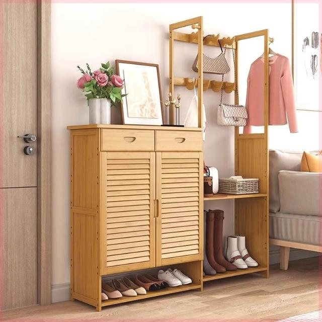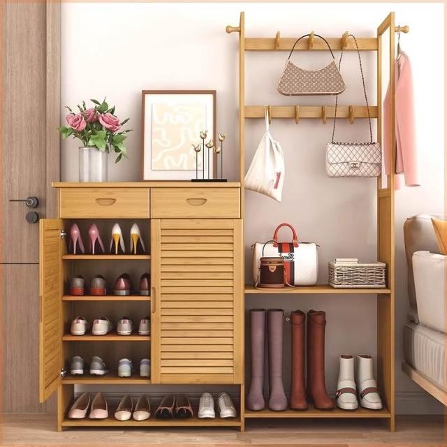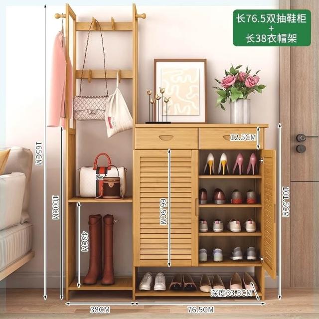 楠竹鞋櫃全竹加厚楠竹鞋櫃衣帽架一體大容量家用臥室玄關櫃多功能