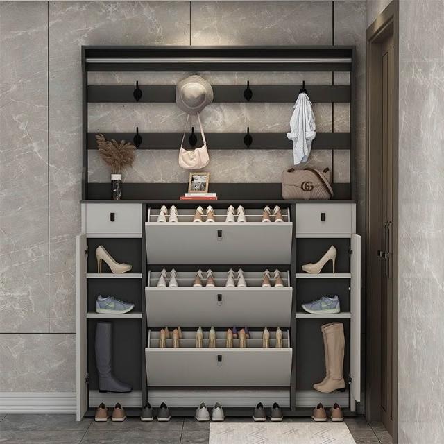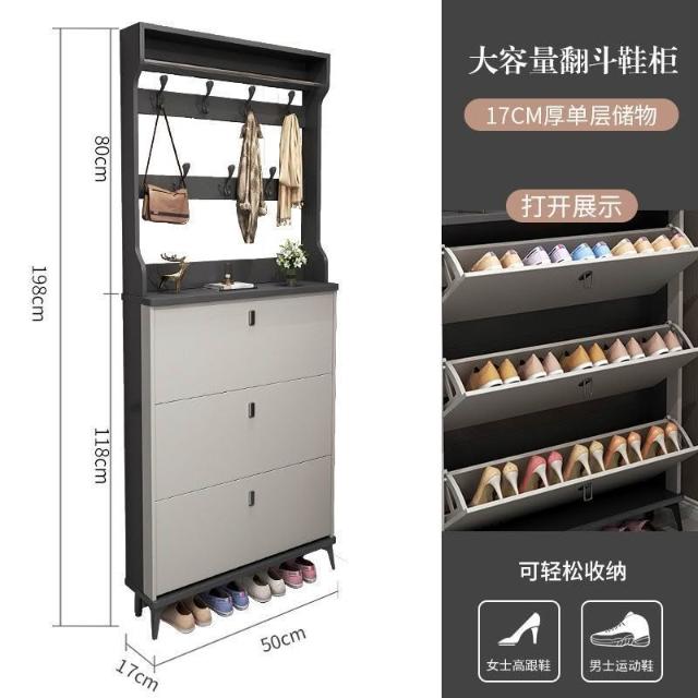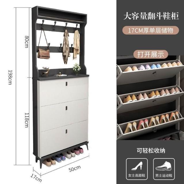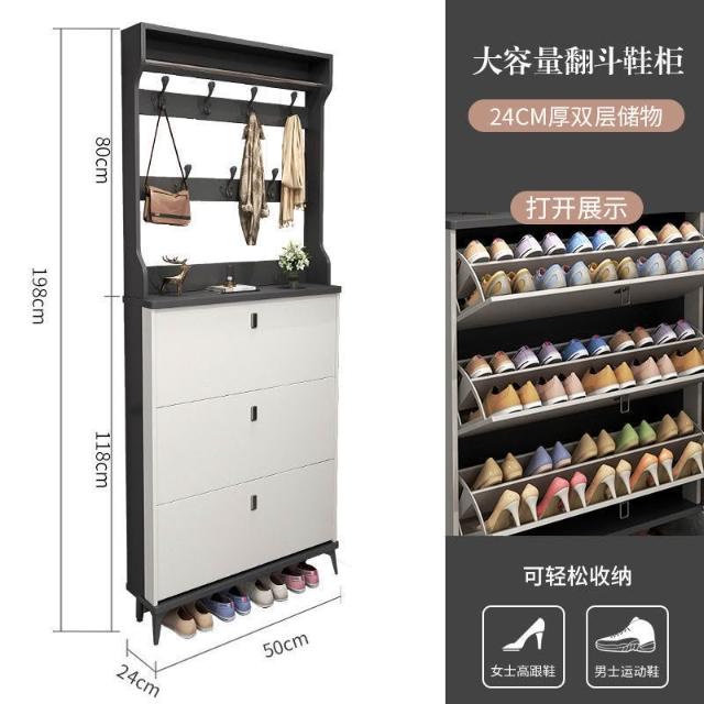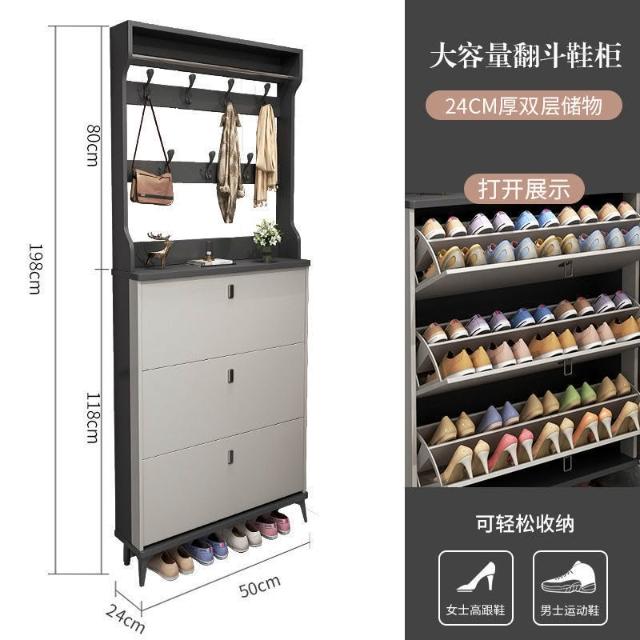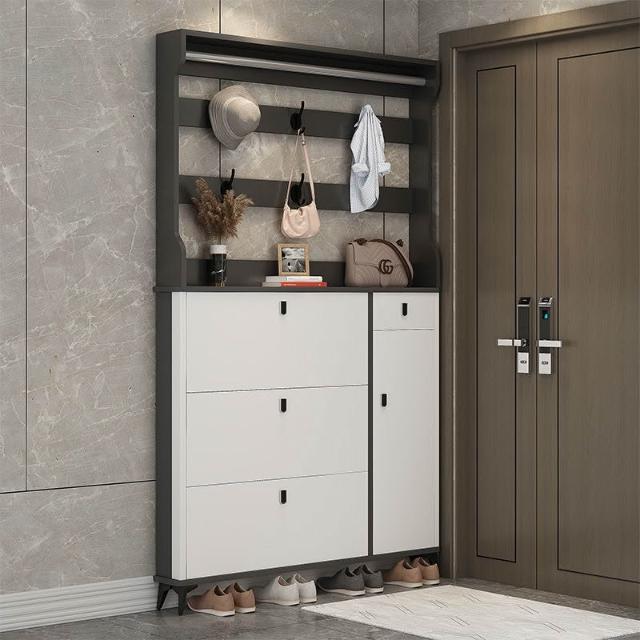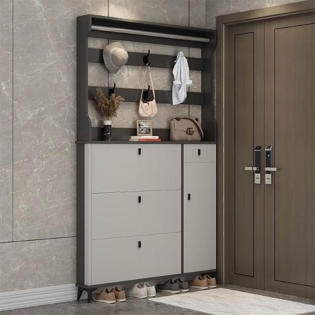 意式超薄鞋櫃帶衣架一體鞋櫃門口進門靠牆玄關櫃現代家用儲物鞋架