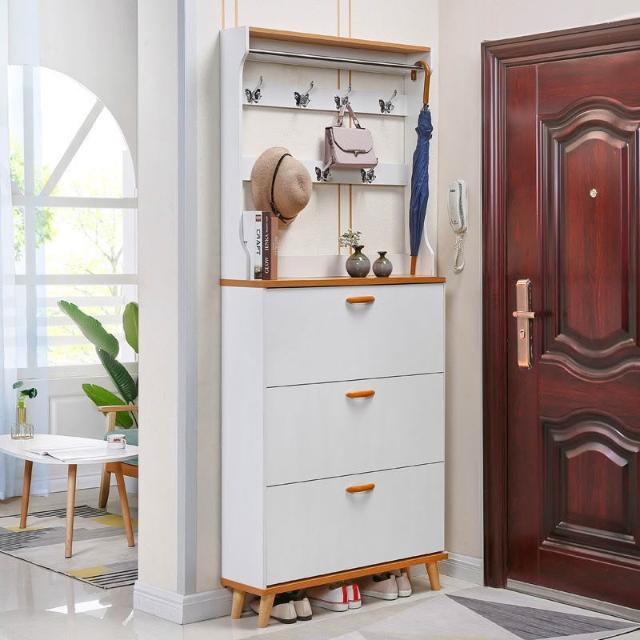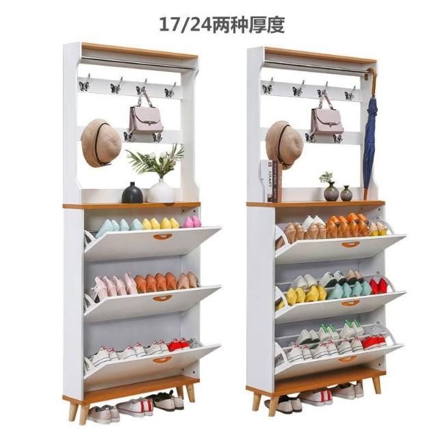 超薄翻鬥鞋櫃鞋架門口特價清倉家用玄關櫃進門帶衣架實木腿經新款