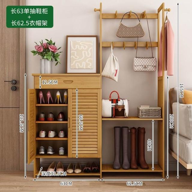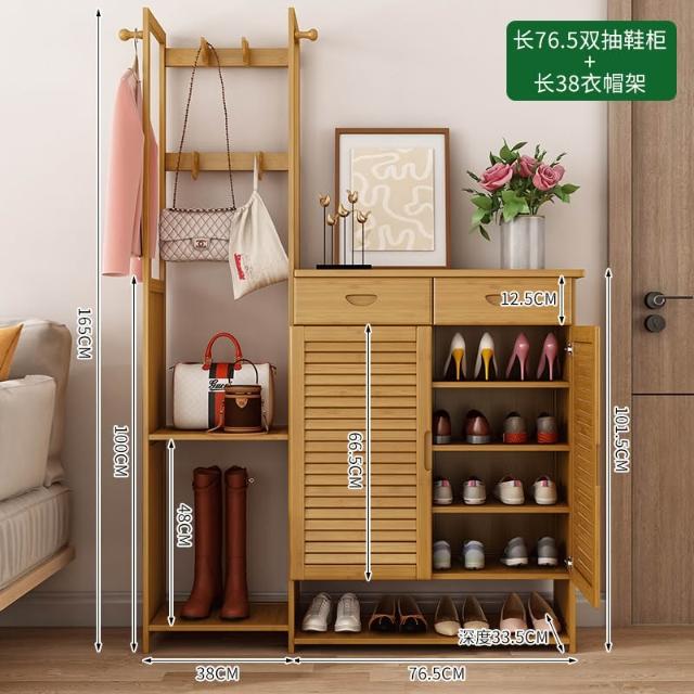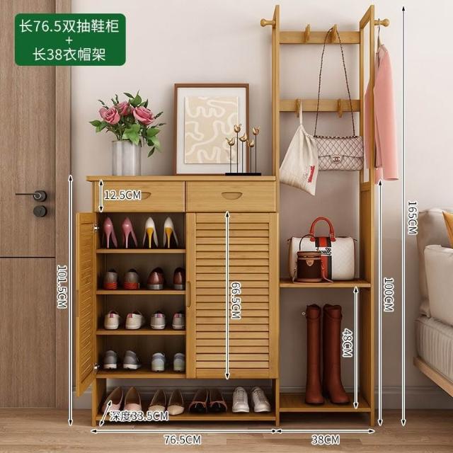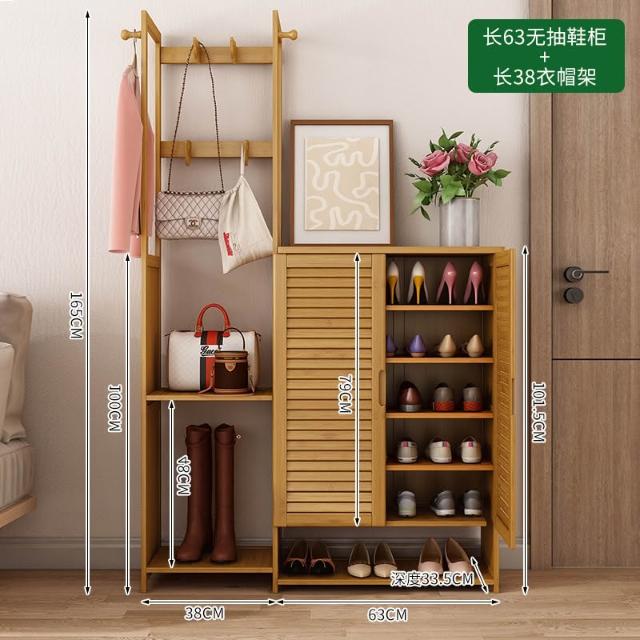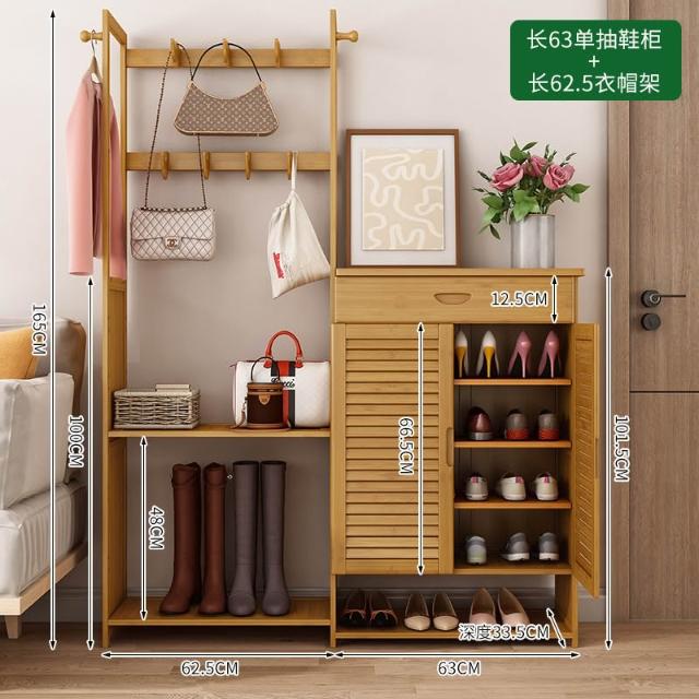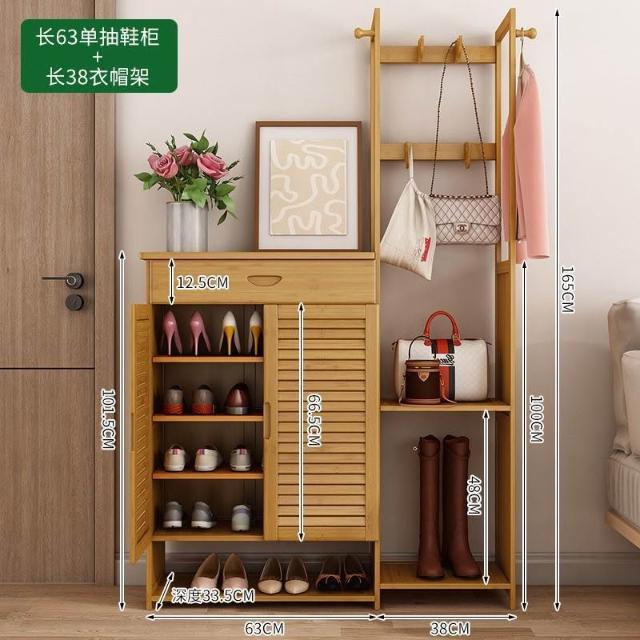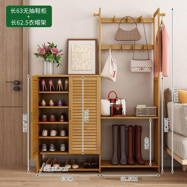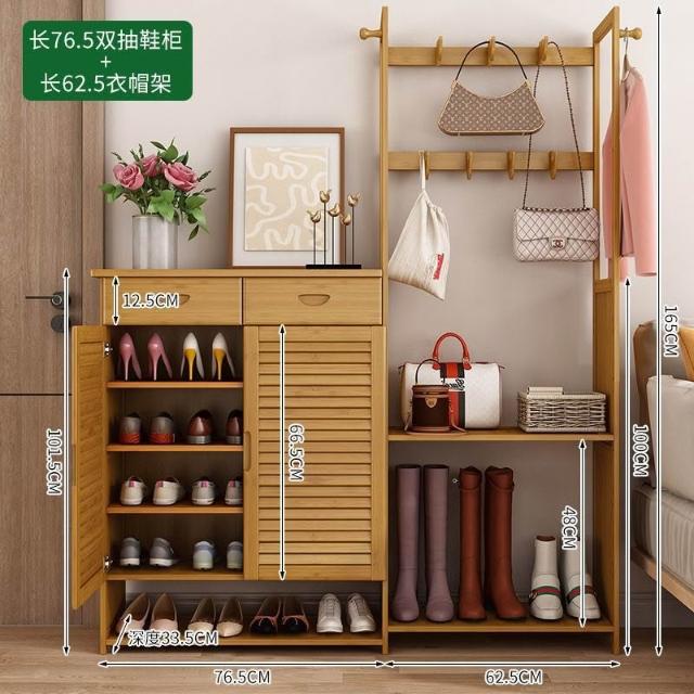 鞋櫃衣帽架一體家用門口入戶室內玄關櫃竹置物架靠牆帶掛衣鉤鞋架