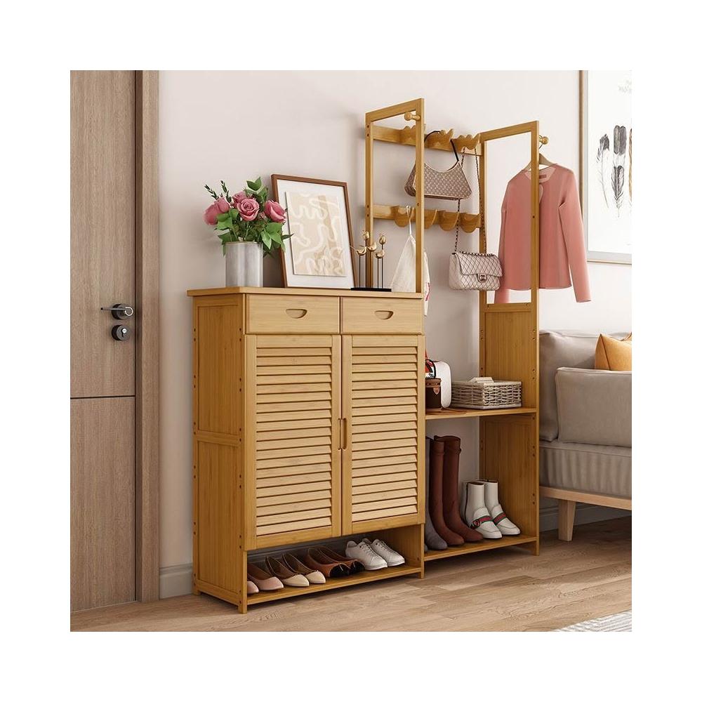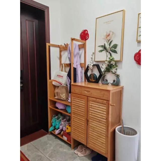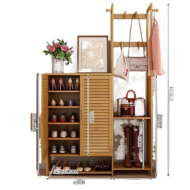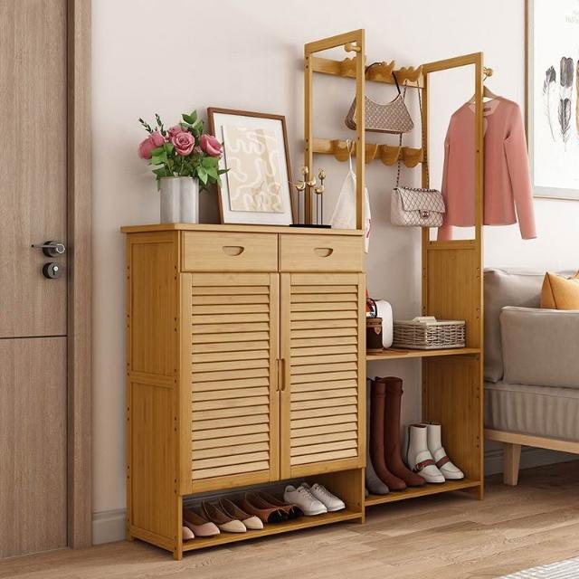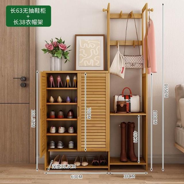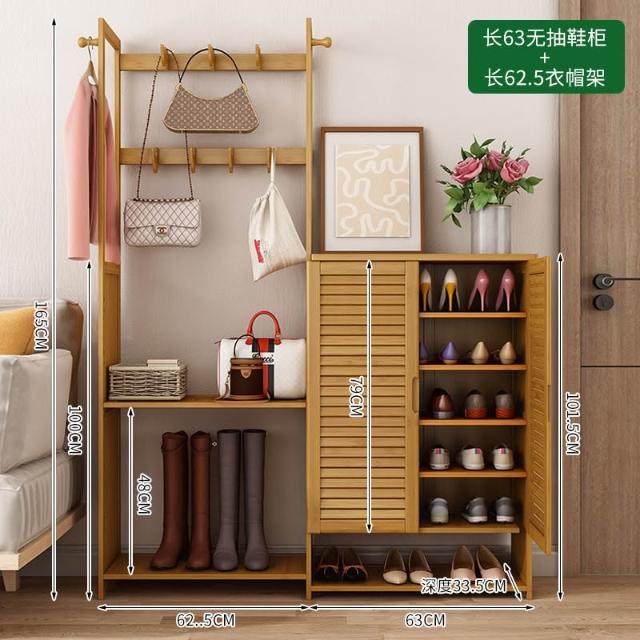 鞋櫃衣帽架一體家用門口入戶室內玄關櫃竹置物架靠牆帶掛衣鉤鞋架