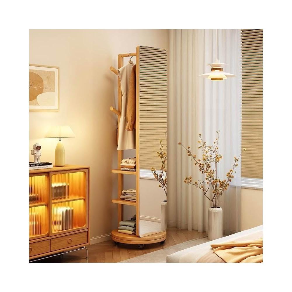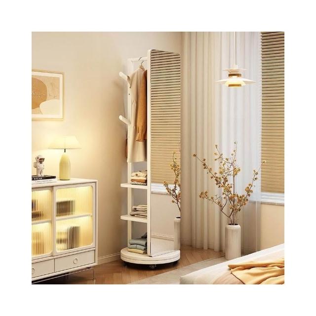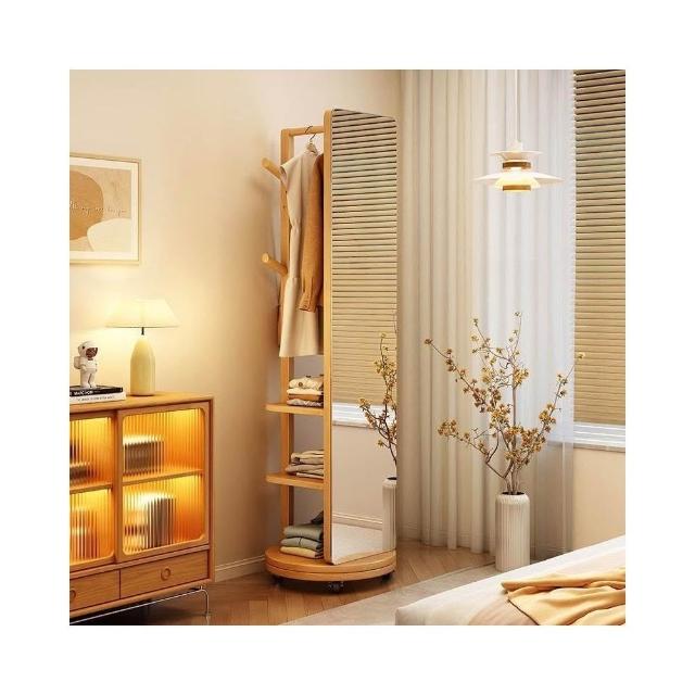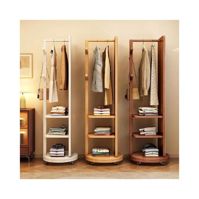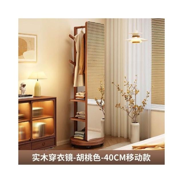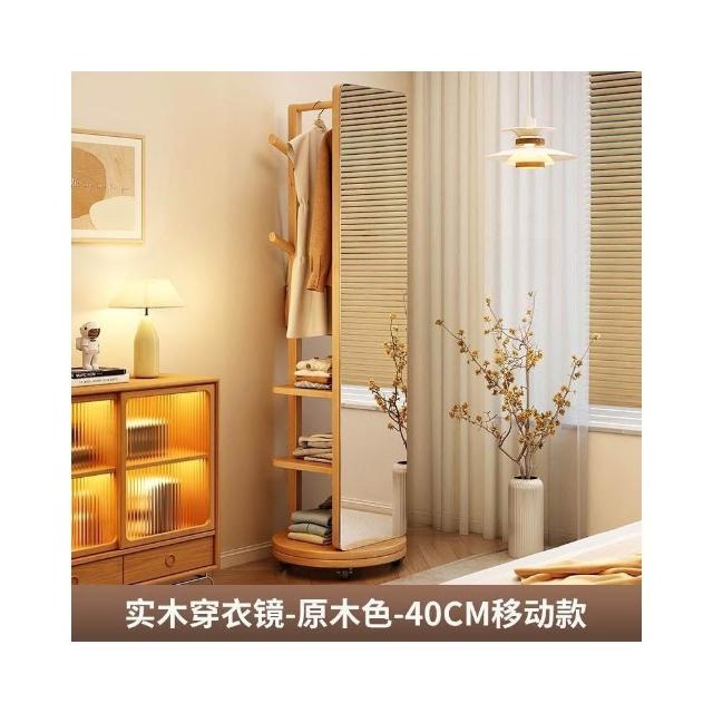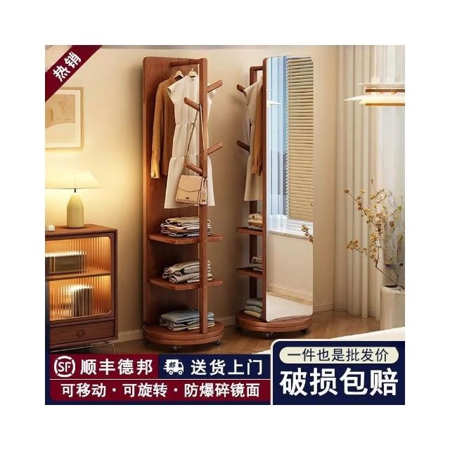 實木穿衣鏡衣帽架可旋轉試衣鏡家用全身鏡掛衣架落地立式收納架子