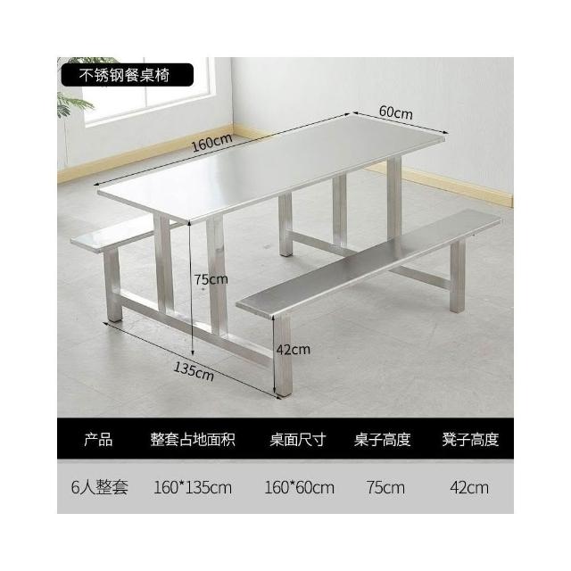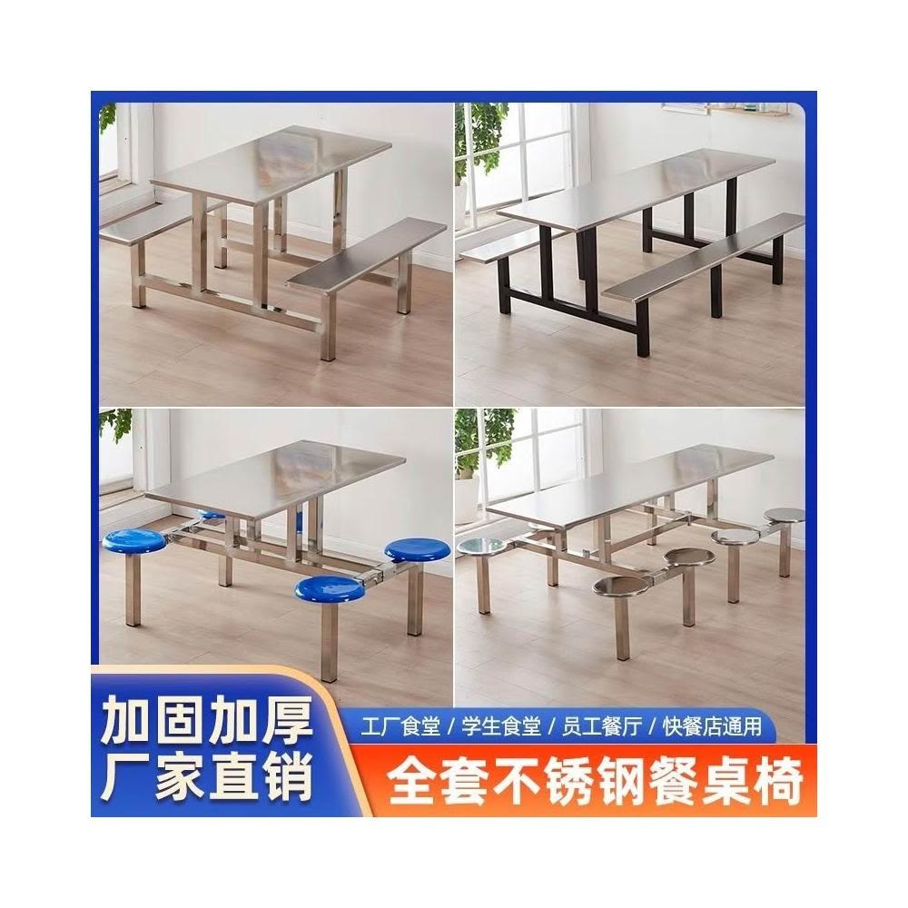 不銹鋼食堂餐桌椅學校學生員工飯堂工廠組合 4人6人8人連體速食桌