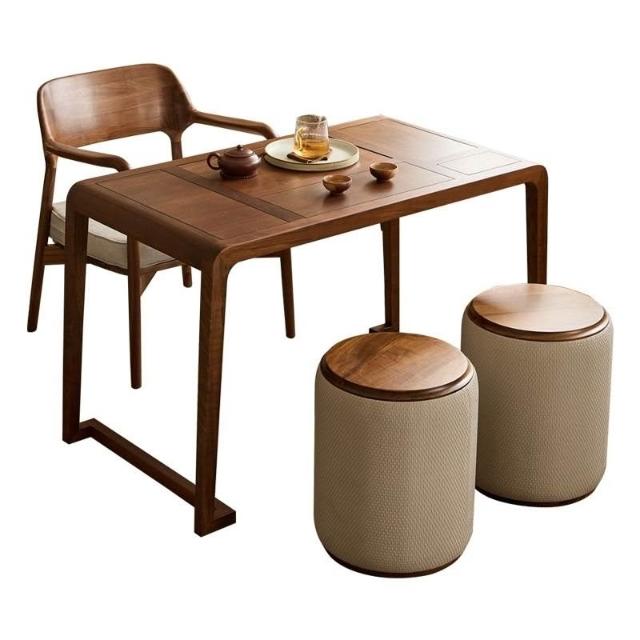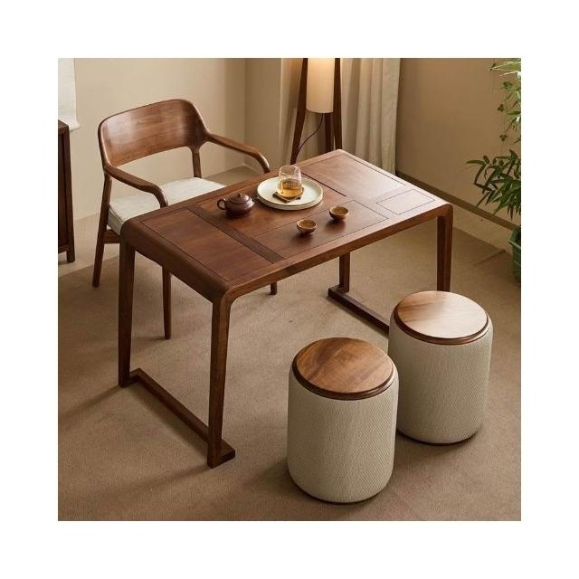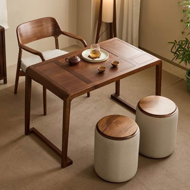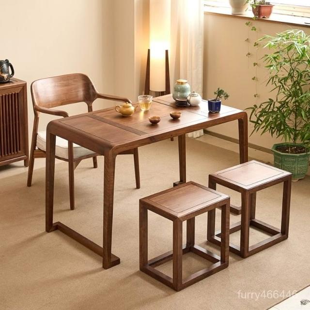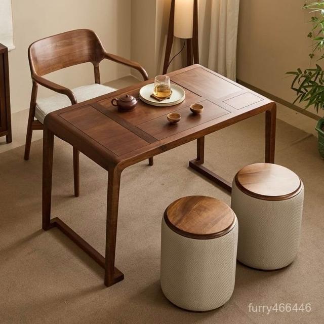 北美黑衚桃全實木茶桌陽臺小戶型多功能家用泡茶臺小書桌免漆家具