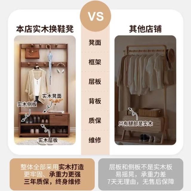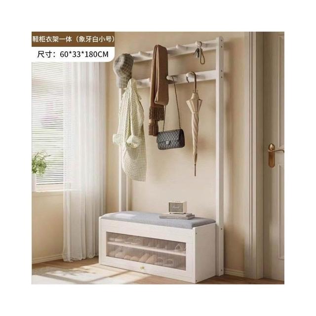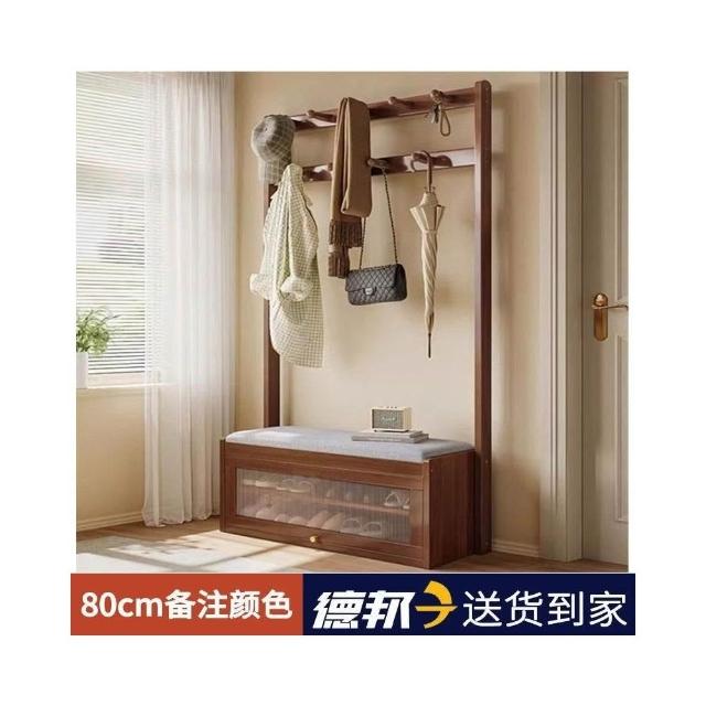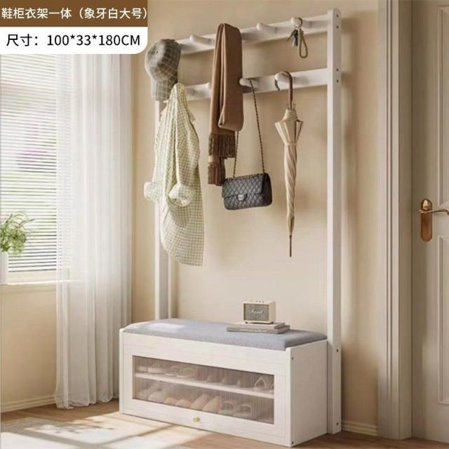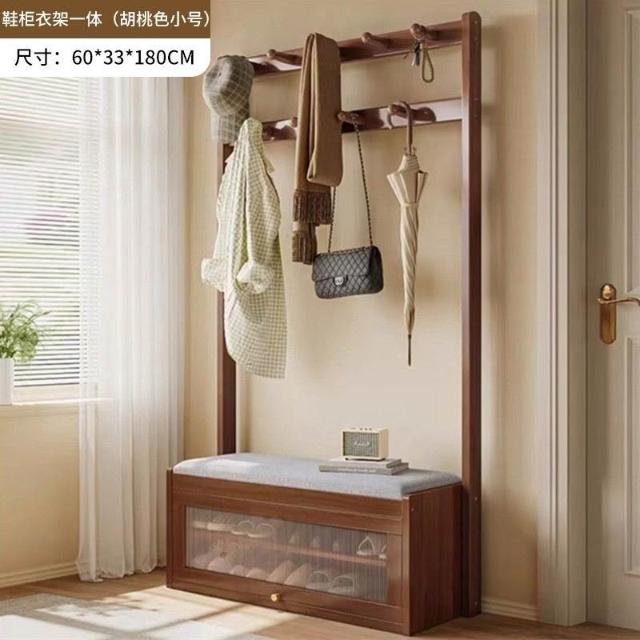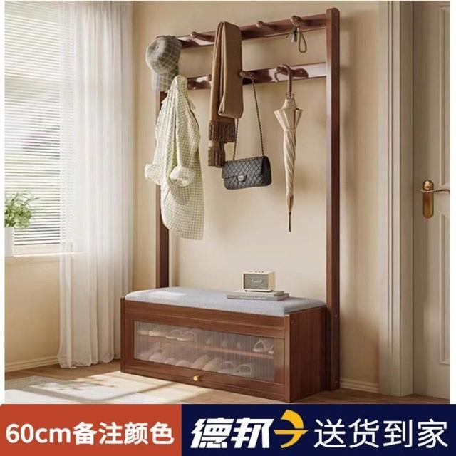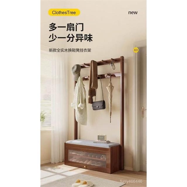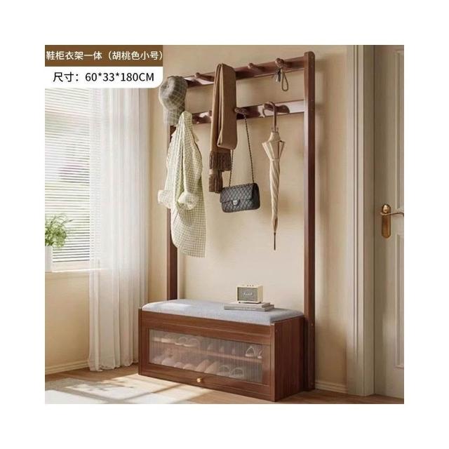 入戶門口換鞋凳掛衣架一體靠墻全實木置物架不佔地鞋櫃衣帽架落地