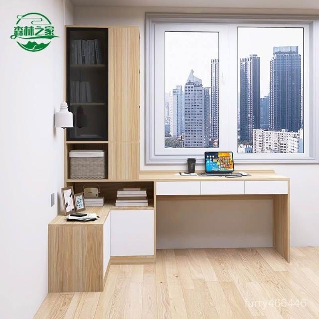 24h🚚床頭櫃書桌書架一體轉角小戶型學習桌辦公電腦桌家用床頭書櫃一體