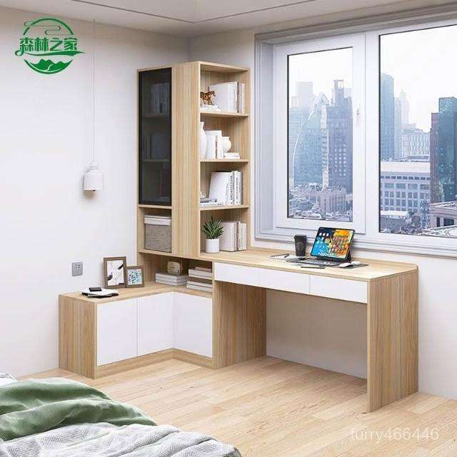 24h🚚床頭櫃書桌書架一體轉角小戶型學習桌辦公電腦桌家用床頭書櫃一體