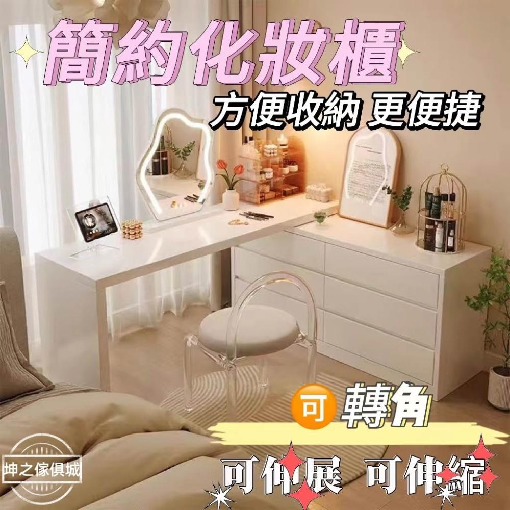梳妝臺臥室簡約現代收納鬥櫃化妝臺書桌一體組閤拐轉角L型化妝桌 多功能公主化妝桌梳妝桌輕奢北歐卧室化妝台