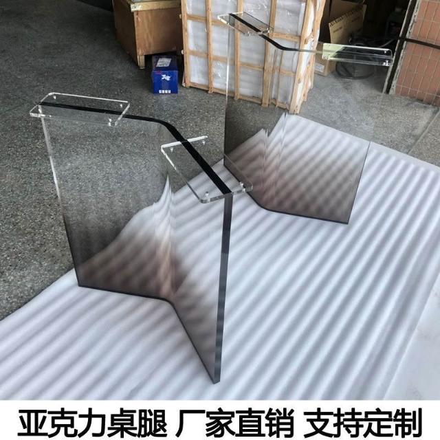 漸變色亞克力桌腿透明懸浮弧形餐桌茶幾島臺巖板支架高檔桌腳定製