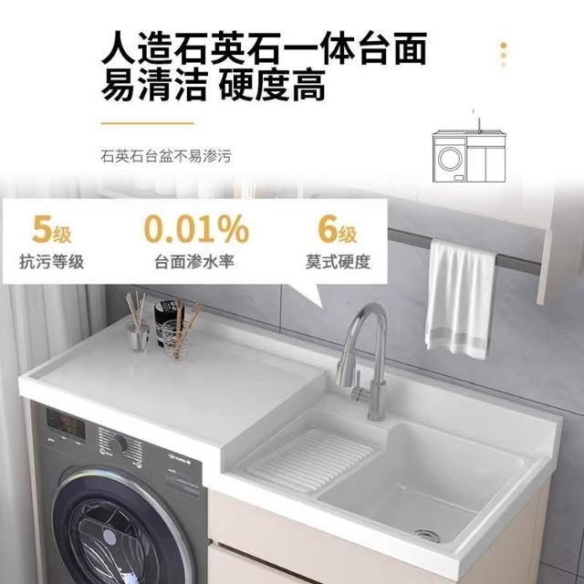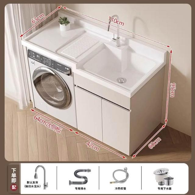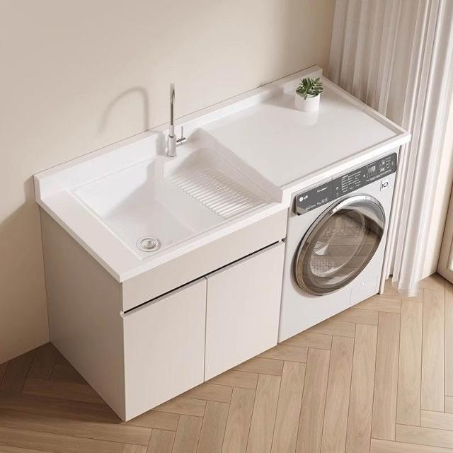 蜂窩鋁落地式洗衣機櫃陽臺洗手盆一體組合定製滾筒伴侶高低盆搓板