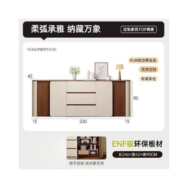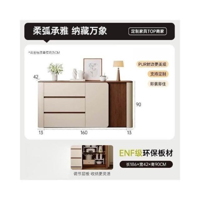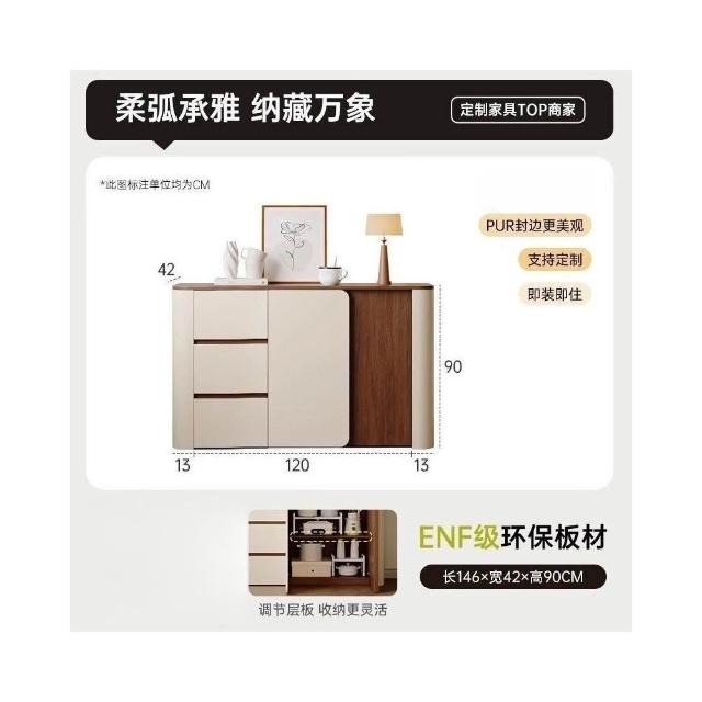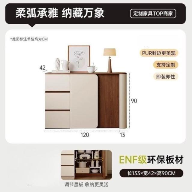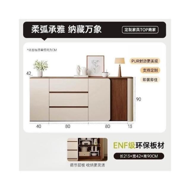 中古奶油風圓弧餐邊櫃鬥櫃一體靠墻免拉手定製高級儲物收納茶水櫃