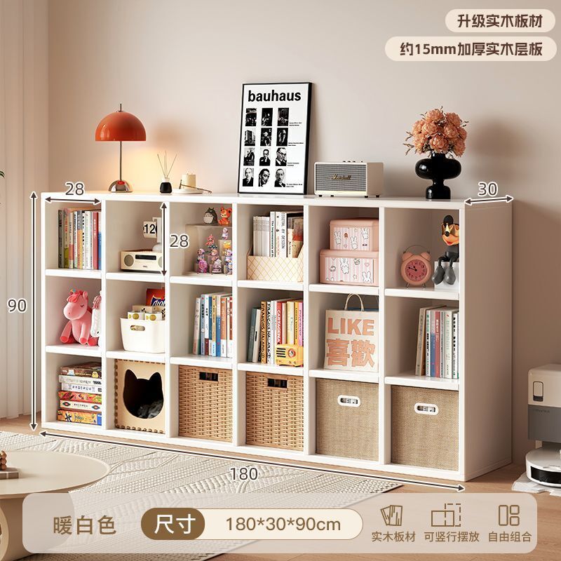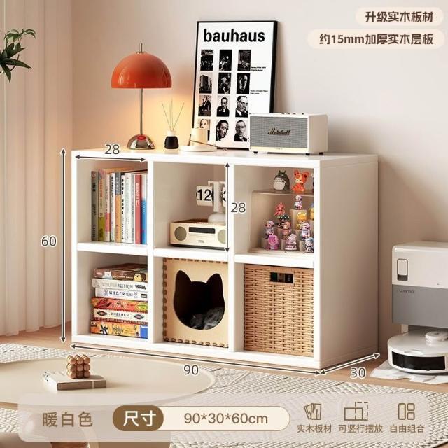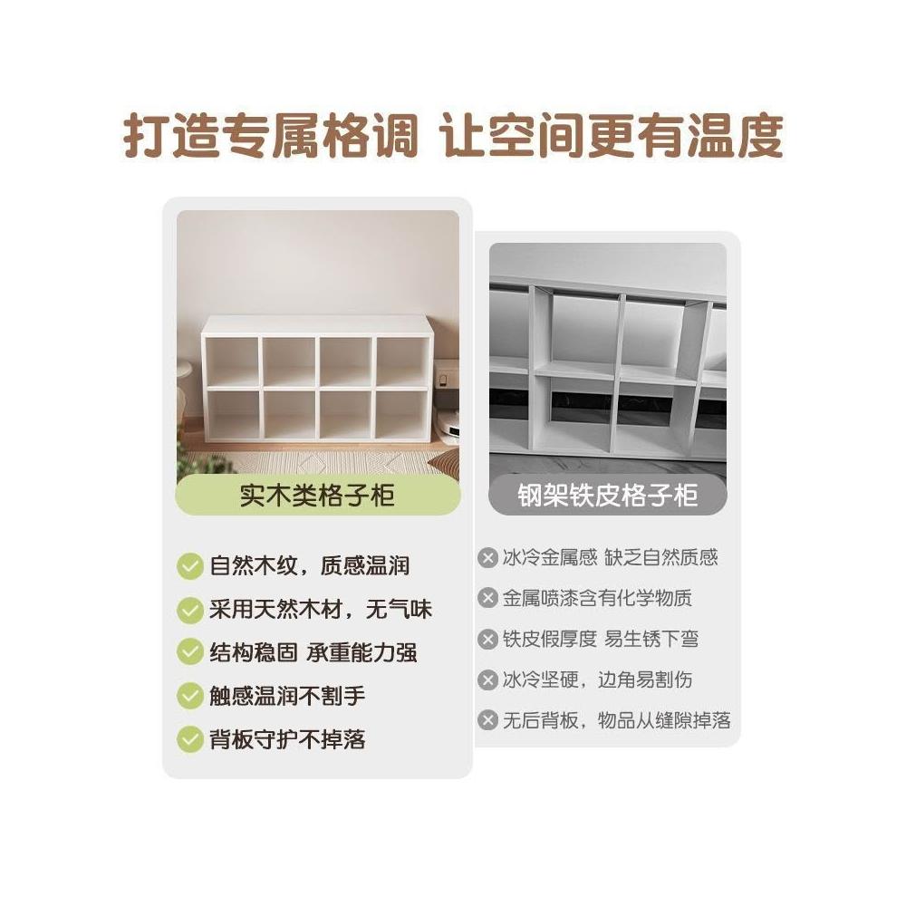 送贈品北歐風奶油色實木格子白色落地書櫃多層分格收納組合書架方格櫃
