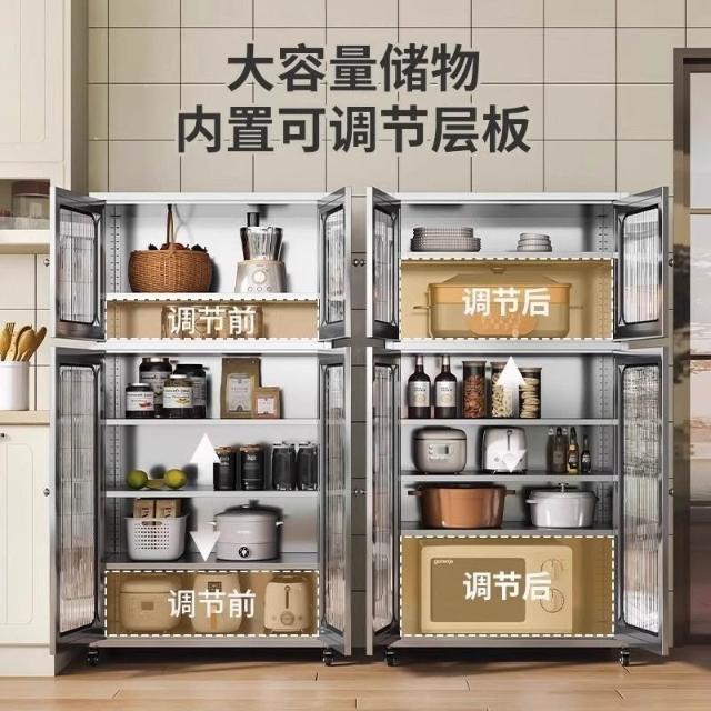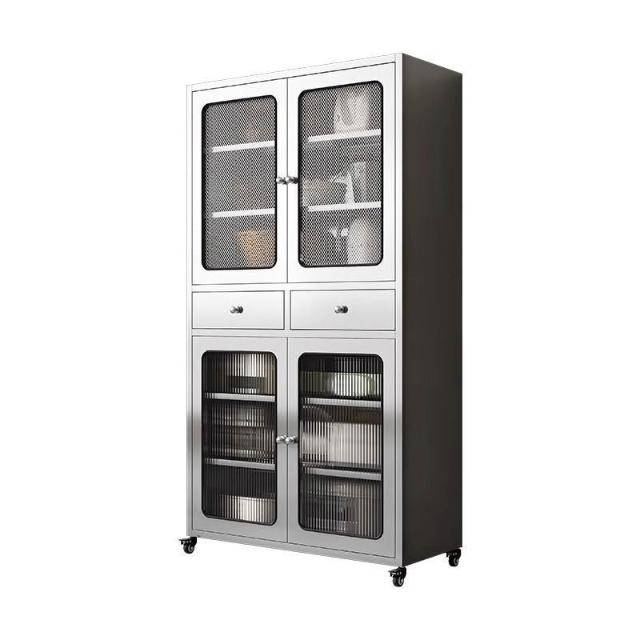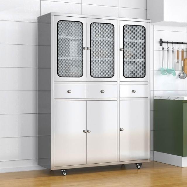304不銹鋼餐邊櫃對開門多層廚房儲物櫃環保不銹鋼碗櫃抽屜式碗櫃