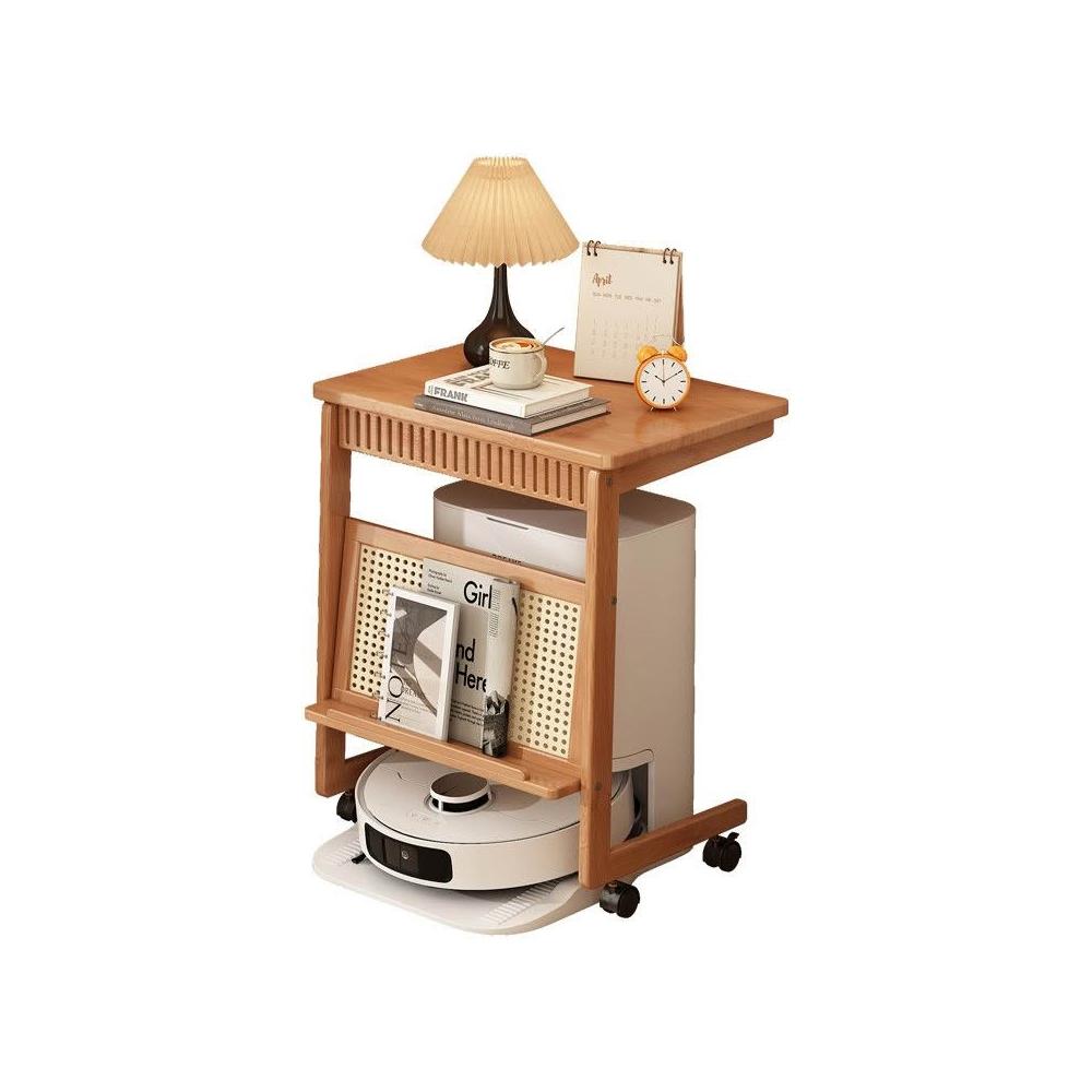 藤編掃地機器人置物架落地家用臥室客廳沙發可移動邊幾邊桌床頭櫃