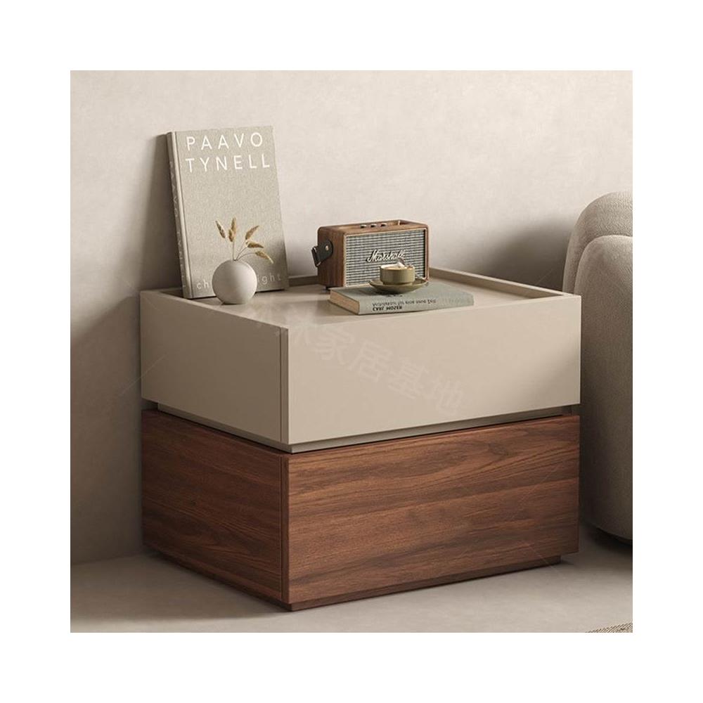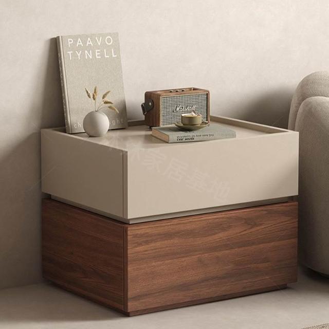 實木意式極簡床頭櫃帶燈一體懸浮式床邊櫃高級感主臥室儲物櫃