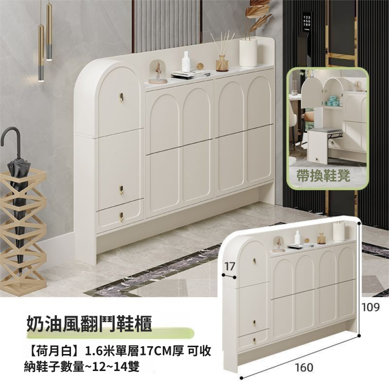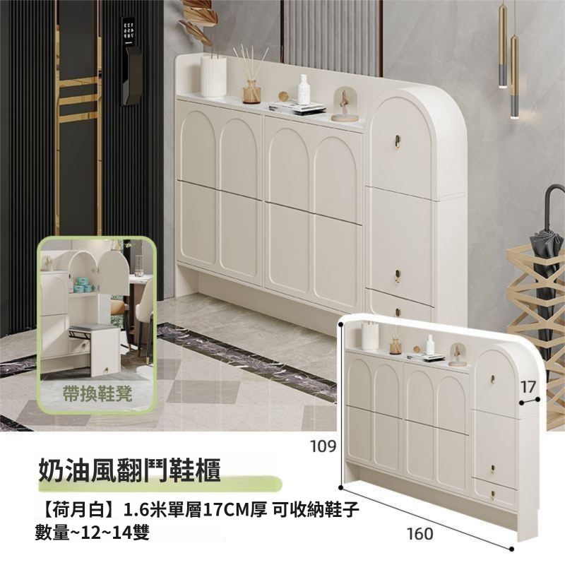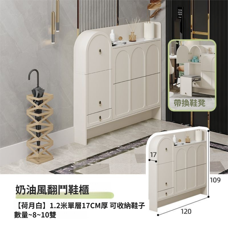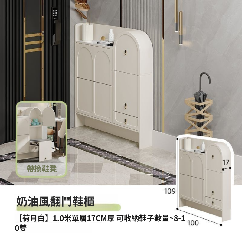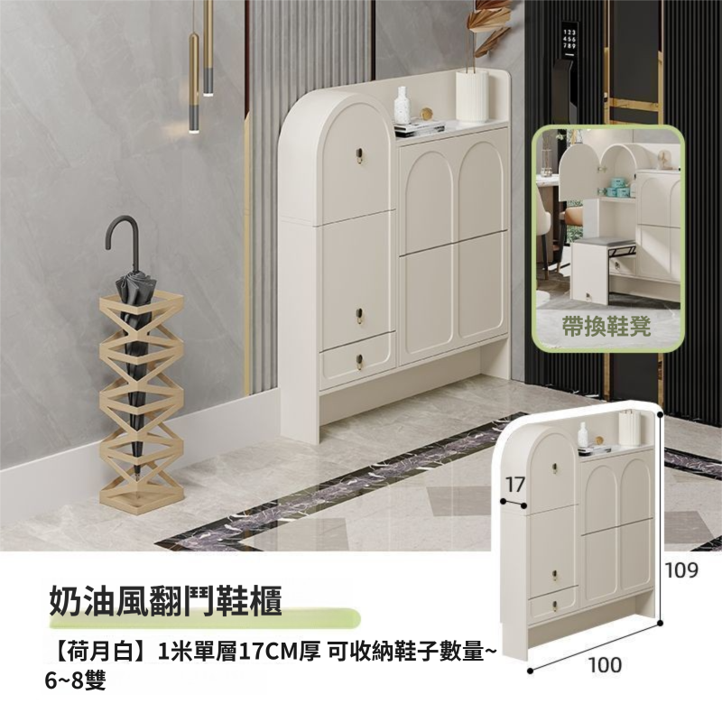 奶油風超薄翻鬥鞋櫃家用門口入戶玄關櫃門後17cm窄鞋櫃換鞋凳一體