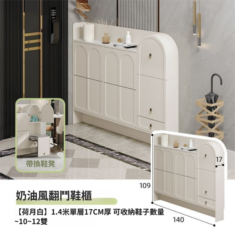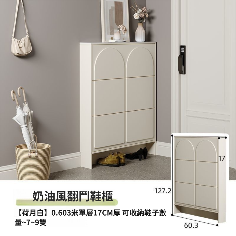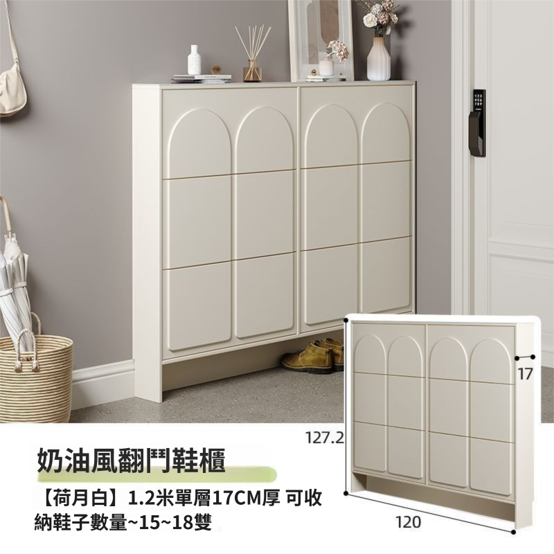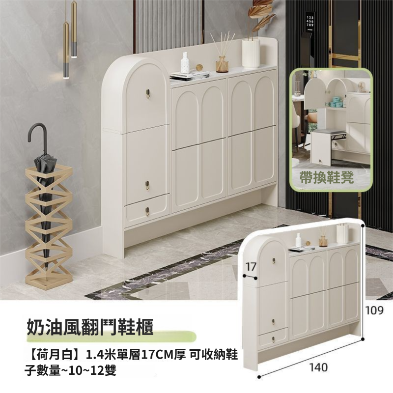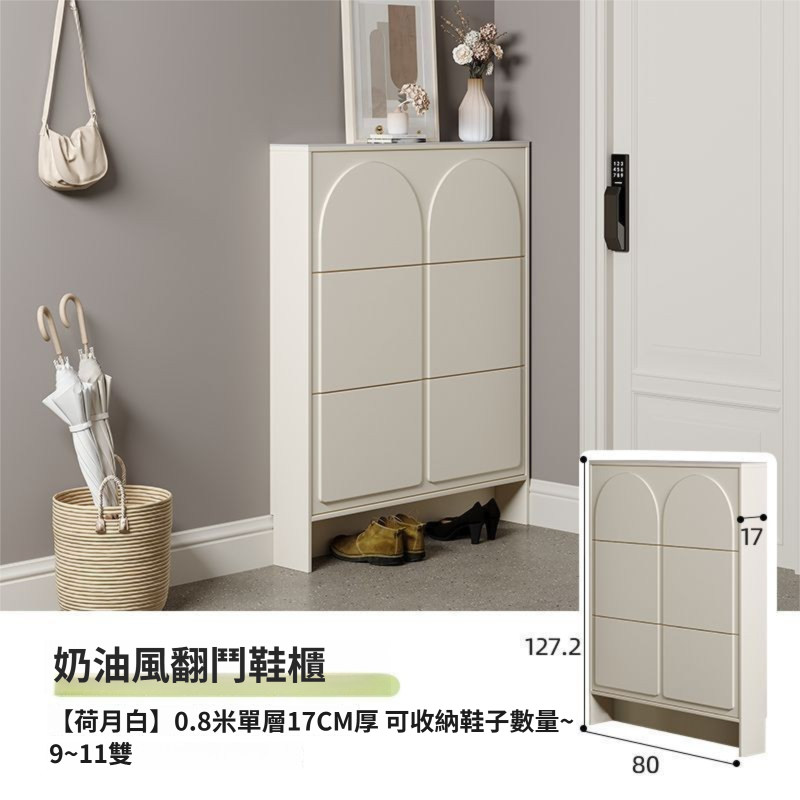 奶油風超薄翻鬥鞋櫃家用門口入戶玄關櫃門後17cm窄鞋櫃換鞋凳一體