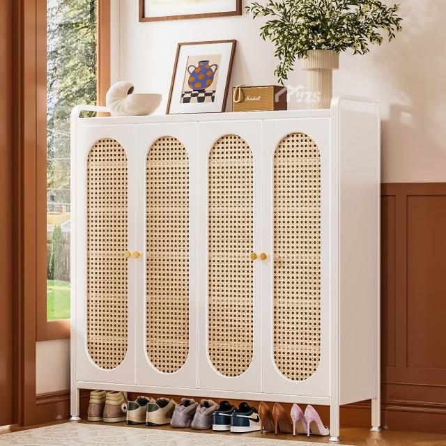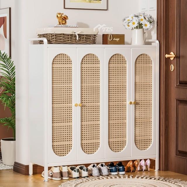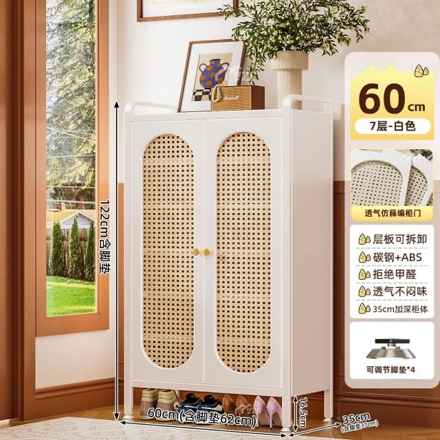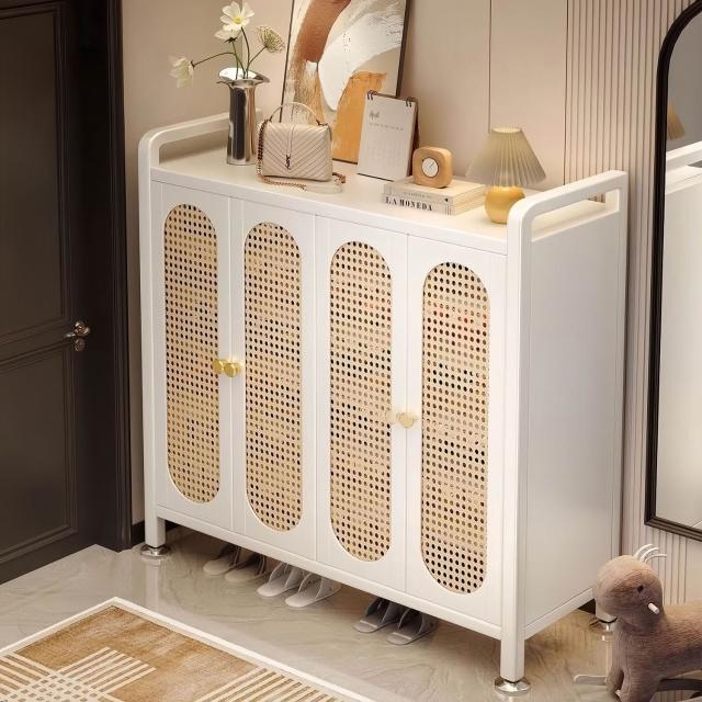 鋼製藤編鞋櫃家用門口簡約收納櫃一體靠墻多層大容量樓道入戶鞋架
