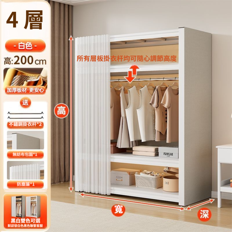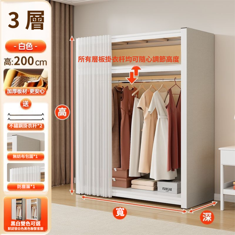 衣帽架簡易衣櫃臥室家用組裝金屬衣櫥出租房用開放式防塵簾掛衣架