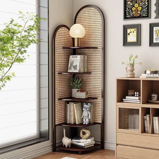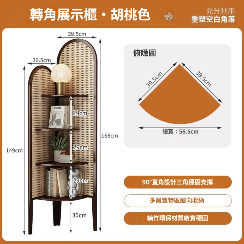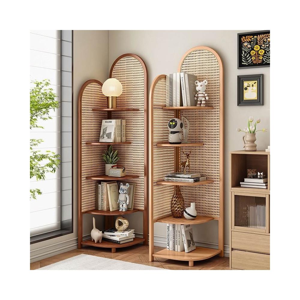 三角置物架書架復古實木客廳小戶型藤編收納沙發墻角臥室靠墻轉角