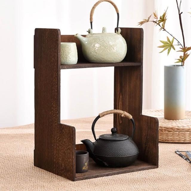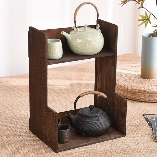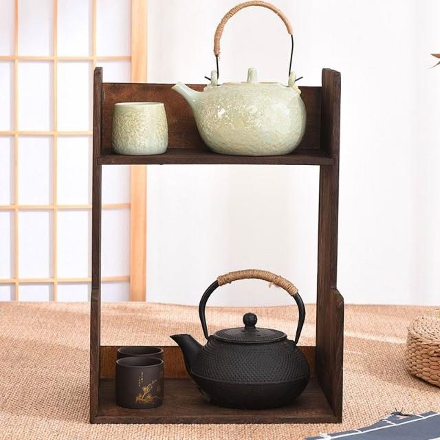 實木茶杯架茶具收納架階梯書架置物架臺面多層梯形書櫃桌面茶棚架