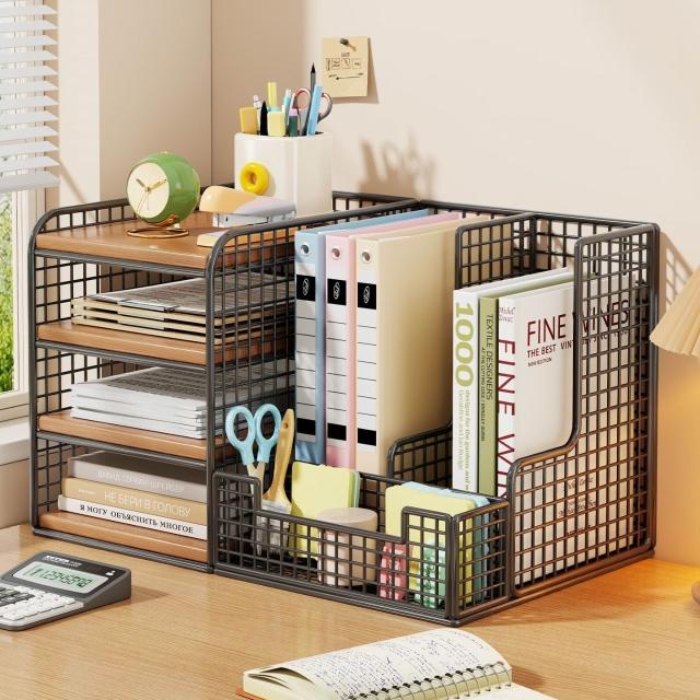 書架桌面置物架辦公桌上文件夾多層學生書本收納整理書櫃鐵藝書立