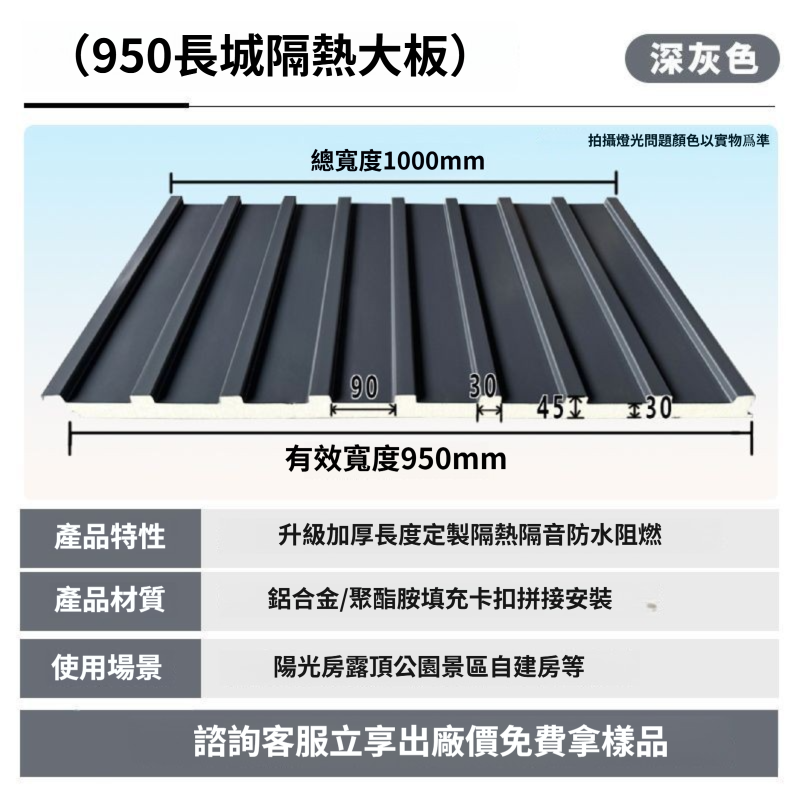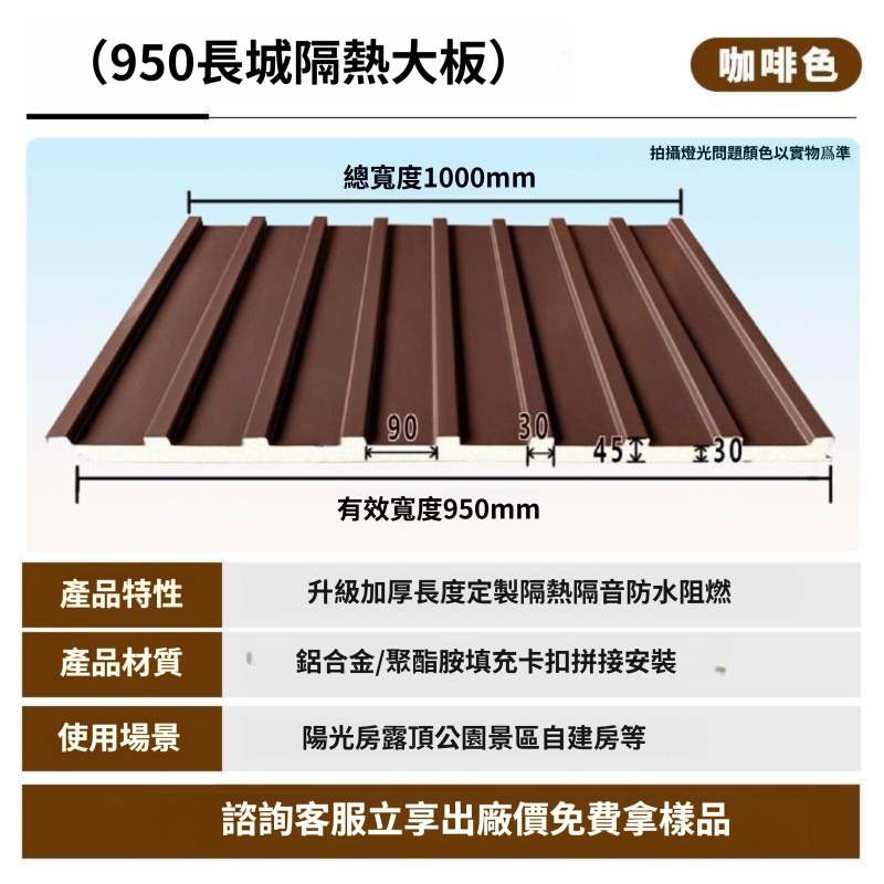 鋁合金長城鋁瓦大板隔熱雙層凹凸隔音防水屋頂陽光房涼亭雨棚防曬