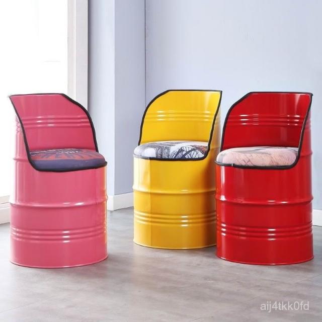 定製油漆桶凳 鐵桶 油漆桶凳 圓桶凳 鐵桶凳 鐵藝工業風矮凳 油桶靠背桶桌椅餐廳餐椅時尚收納凳子復古儲物鐵桶椅子美式風