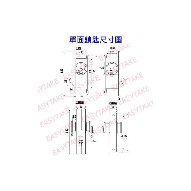 CY清源鋁門鎖鉤鎖 把鉤/雙鉤 扁匙/卡巴匙 推門適用