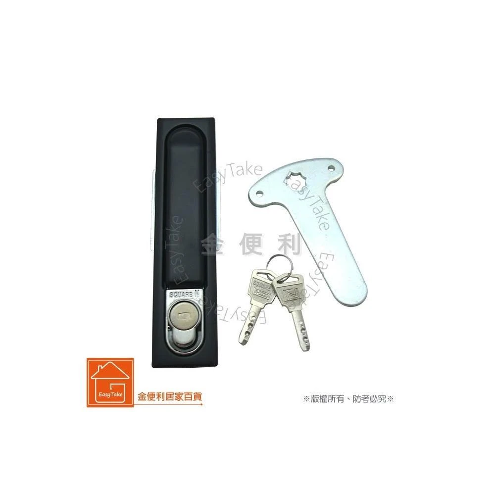 平面黑 壓扣式把手附鎖A-490-3 142mm配電箱鎖 平面鎖 電氣箱鎖 開關箱 門鎖 把手鎖