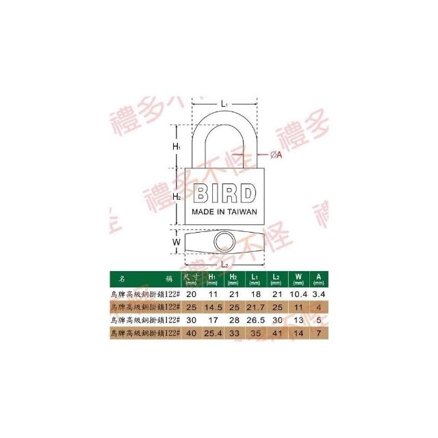《BIRD》 高級銅掛鎖/鎖頭122# 蛇溝 40mm